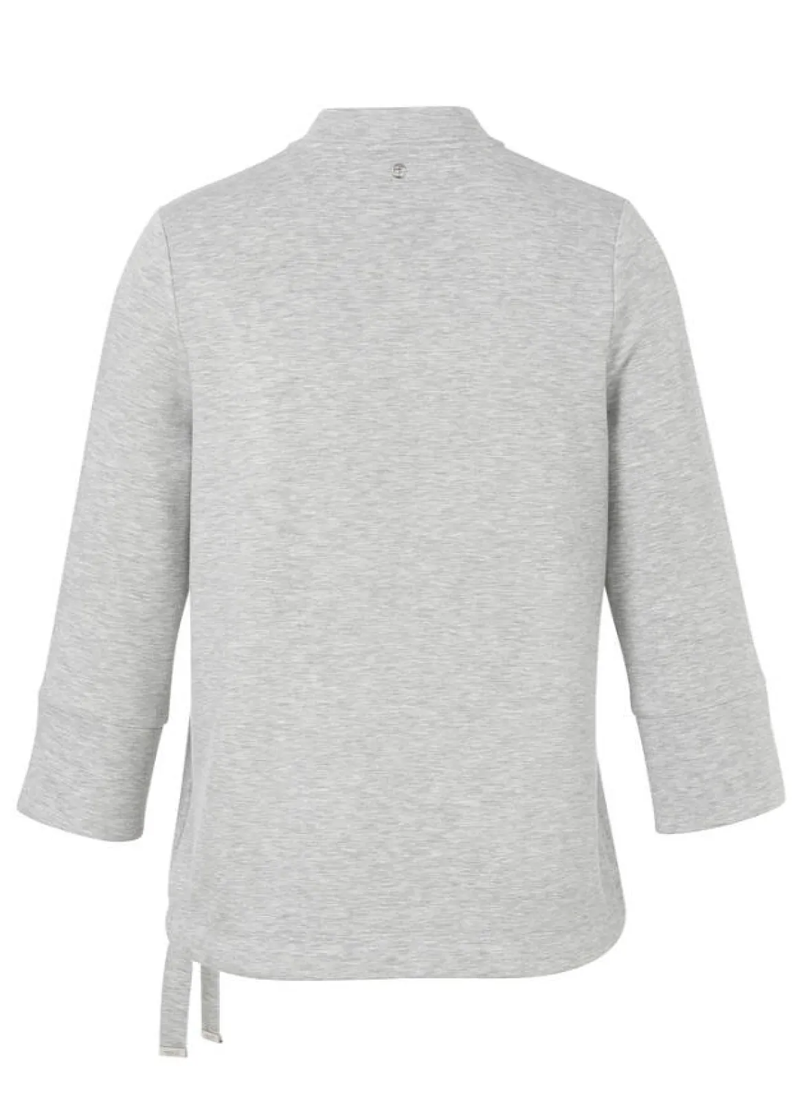 3/4-Arm Sweatshirt mit schmückendem Zipper in Silber-Melange, leicht nach unten ausgestellt mit Bindeband im Saum.