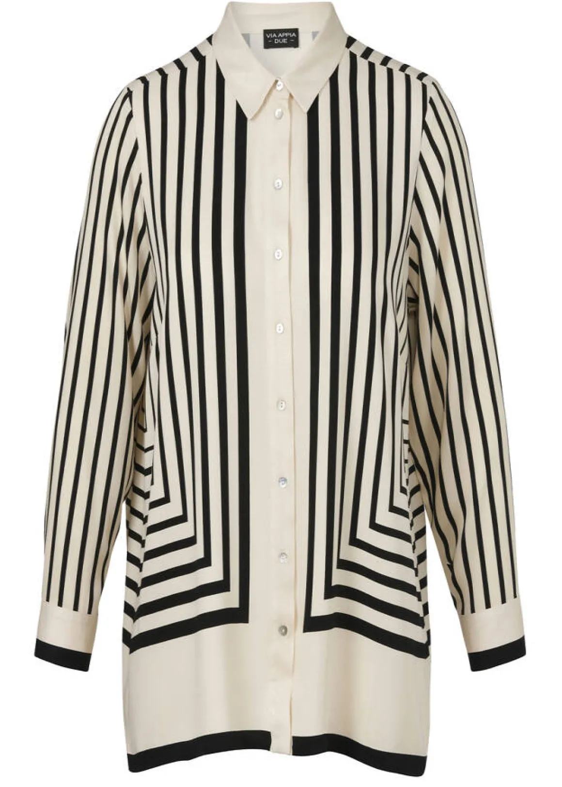 Feminine Hemdbluse aus reiner, fließender Viskose mit einem chicen, grafischen Allovermuster in der edlen Farbkombi Schwarz / Vanille.