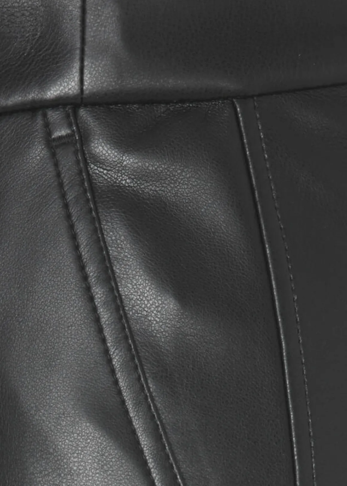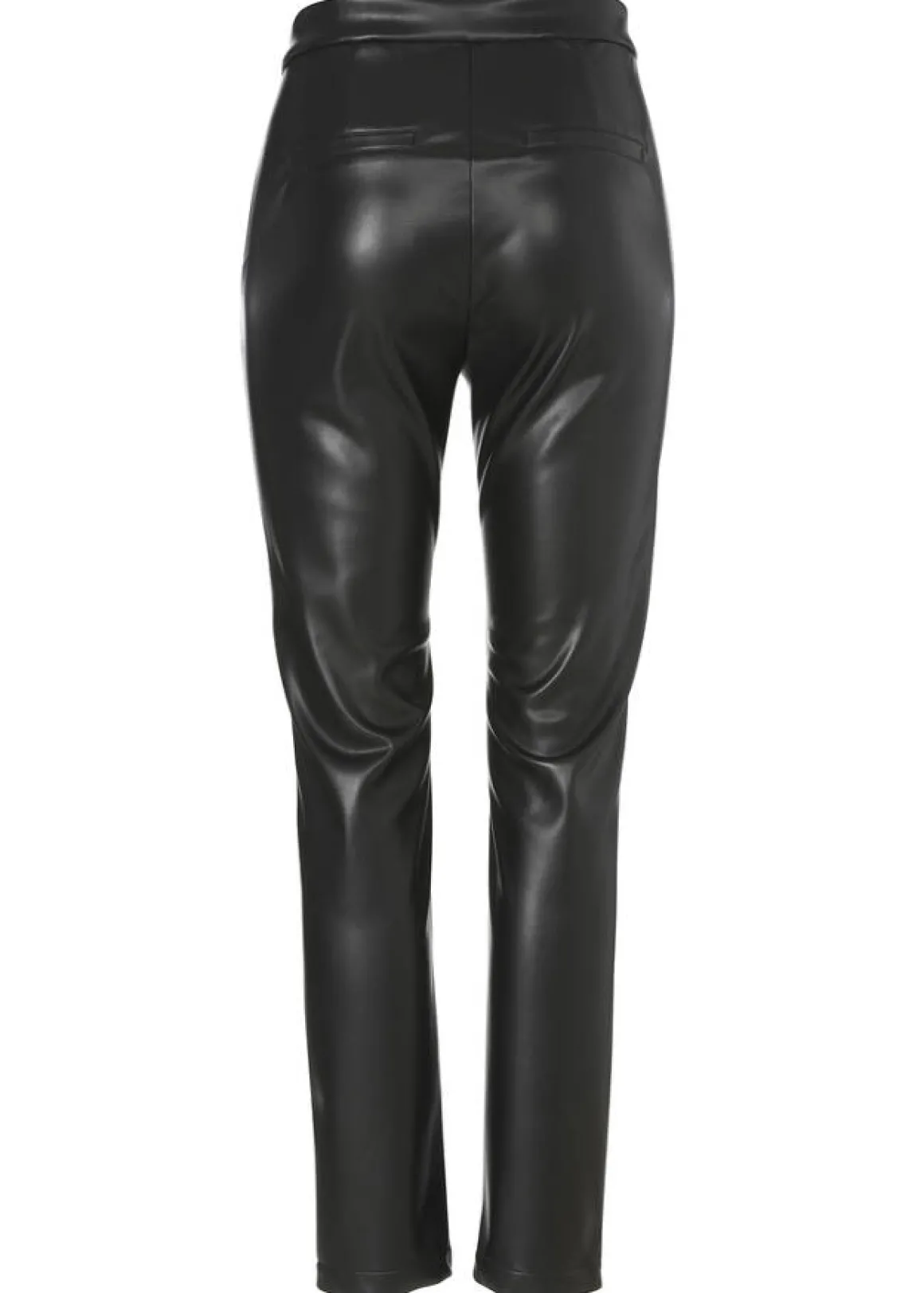 Edle Schlupfhose in Lederoptik mit schmalen Beinen im kombistarken Schwarz. Ein hochwertiges zeitloses Basic für Ihre Grundgarderobe. Die Hose aus veganem Leder verleiht jedem Outfit einen coolen Touch.