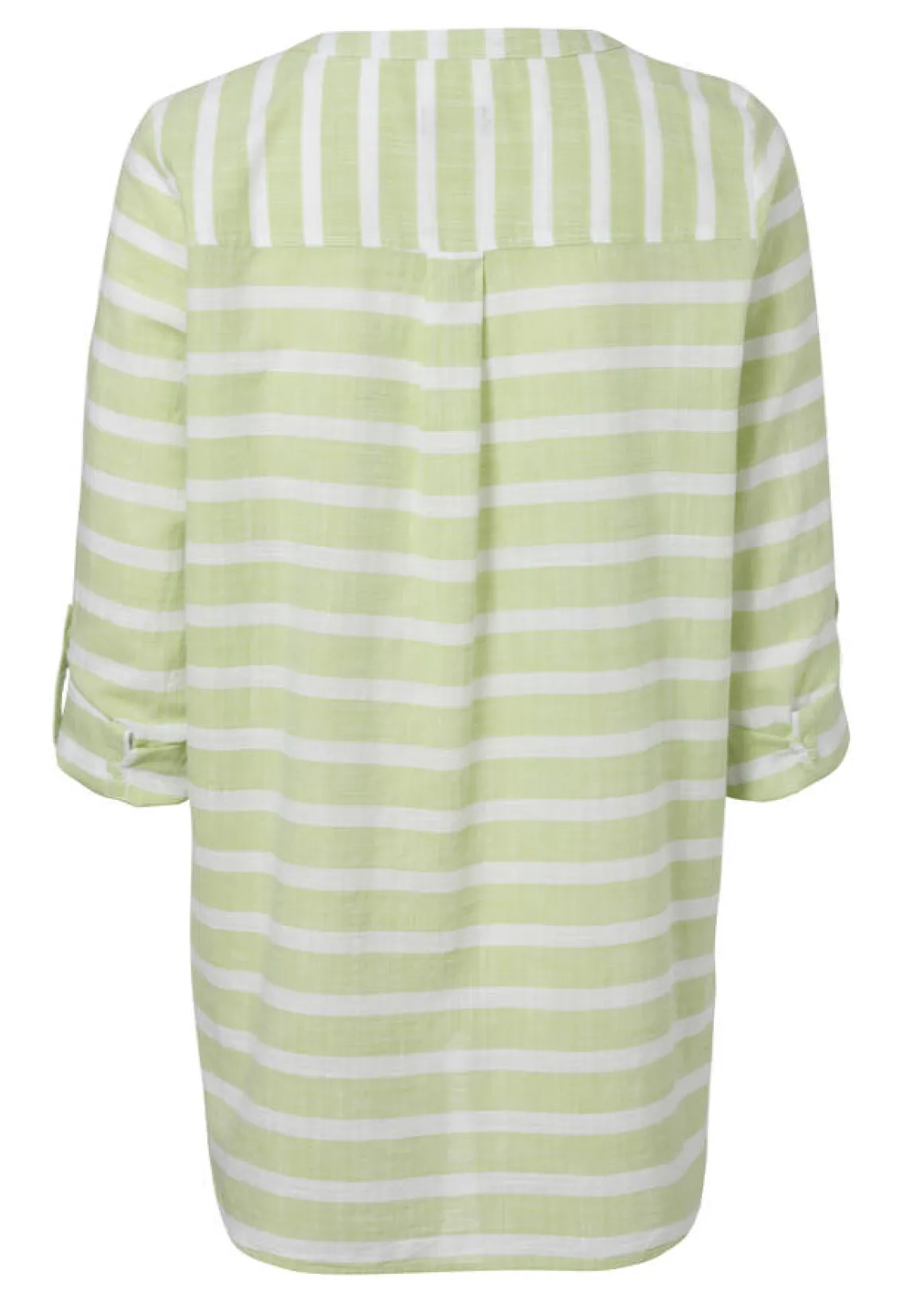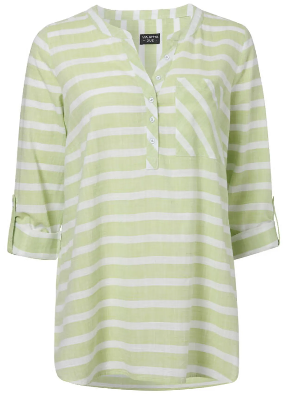Diese dezente Schlupfbluse von VIA APPIA DUE gehört einfach in Ihren Kleiderschrank! Das gestreifte Allover-Muster und der mit Knöpfen verzierte V-Ausschnitt verleihen ihr ein gediegenes Design. Sie überzeugt zudem mit ihrer lässigen Passform und ist dank ihrer bequemen Baumwolle besonders weich. Als praktisches Detail erweisen sich die langen Ärmel mit Aufschlagmöglichkeit.