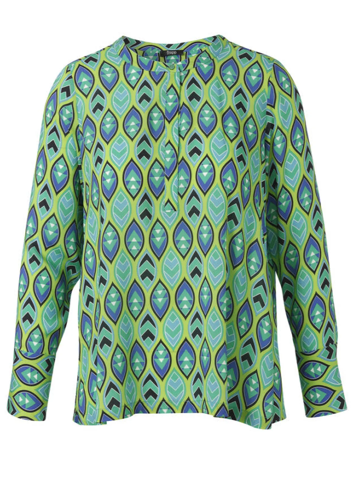 - Farbenfrohe Viskose Bluse mit Allover Print und Knöpfung