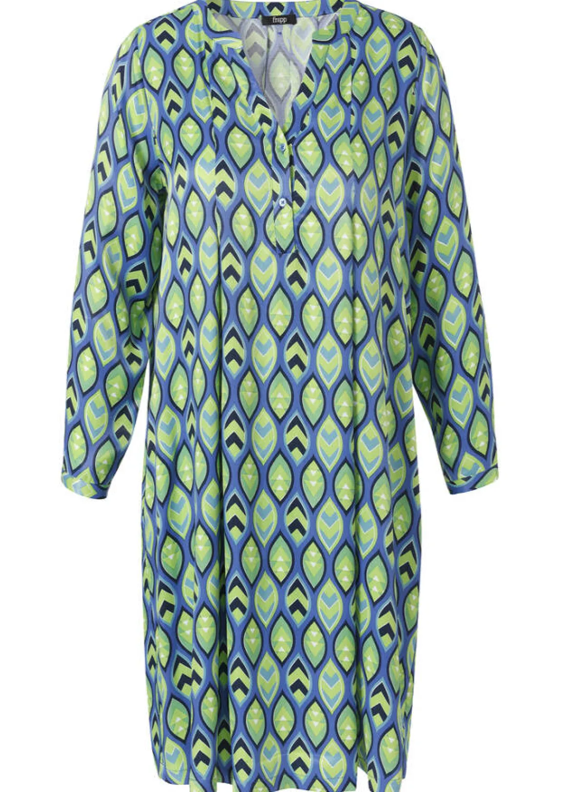 Das farbenfrohe Viskose-Kleid mit Allover-Print besticht durch seinen fließenden Schnitt und hochwertige Materialqualität. Perfekt für einen trendigen Look.