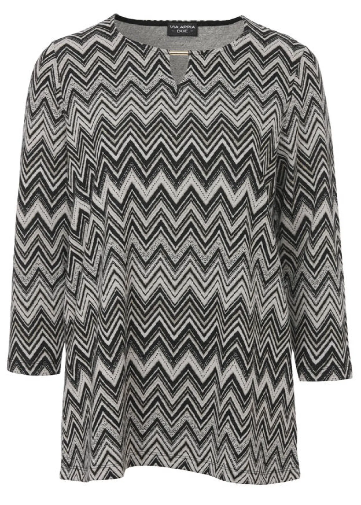 Verleihen Sie Ihrem Freizeit-Look das gewisse Etwas – mit diesem feschen 3/4-Arm-Shirt von VIA APPIA DUE! Angesagt und in stylischem Design präsentiert es sich mit einem coolen Zick-Zack-Muster. Mit seiner figurumspielenden Passform zaubert es dazu eine fabelhafte Silhouette.