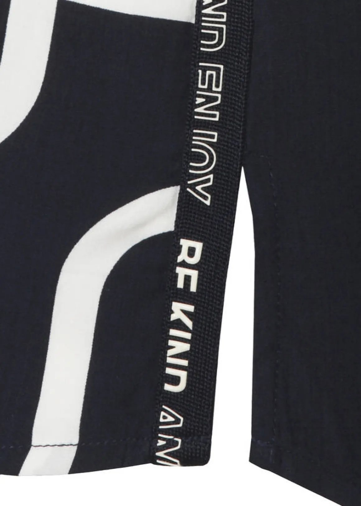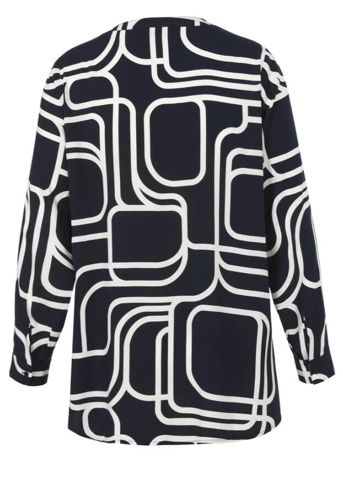 Feine Viskose-Tunika aus edler Viskose in Marineblau mit cremefarbenem, grafischem Print. Luftig, weit geschnitten für höchsten Tragekomfort.