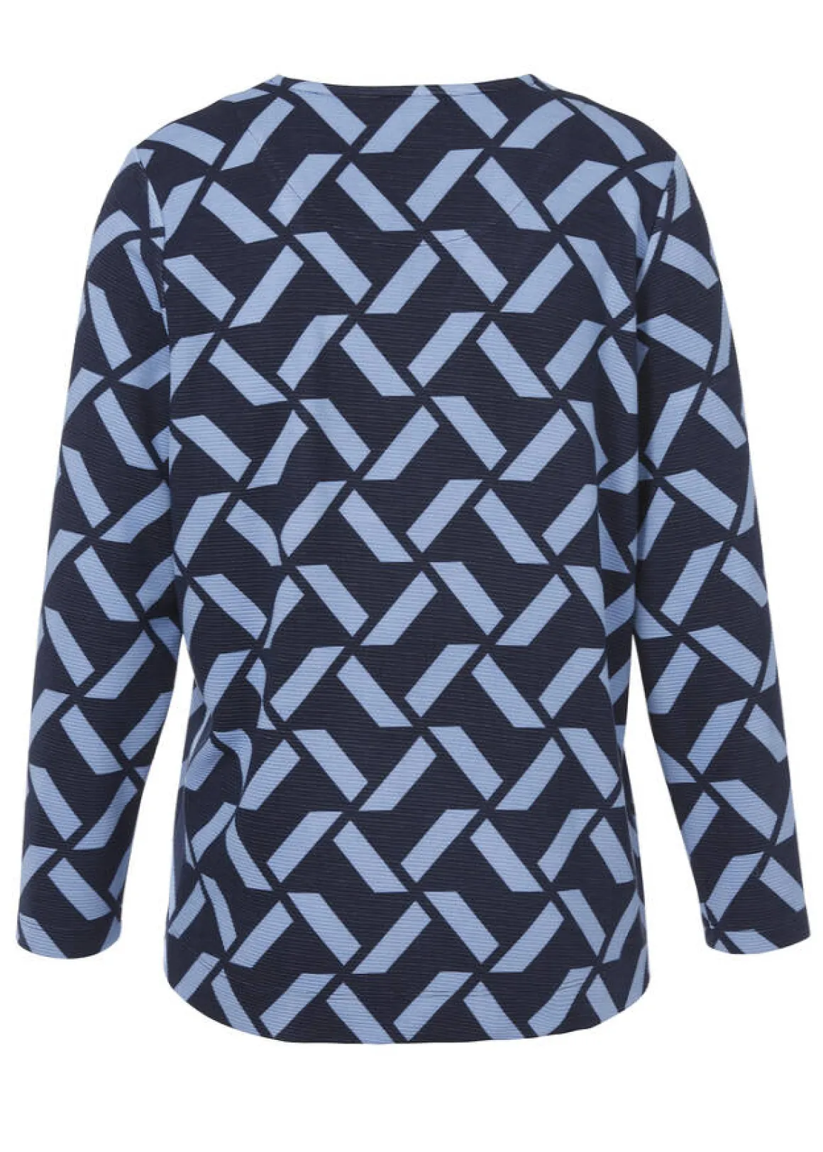 Sweatshirt in leichter Ripp-Struktur mit geometrischem Muster in harmonierenden Blautönen. Lockerer Sitz und bequemer Tragekomfort durch weiche Qualität mit Stretchanteil.