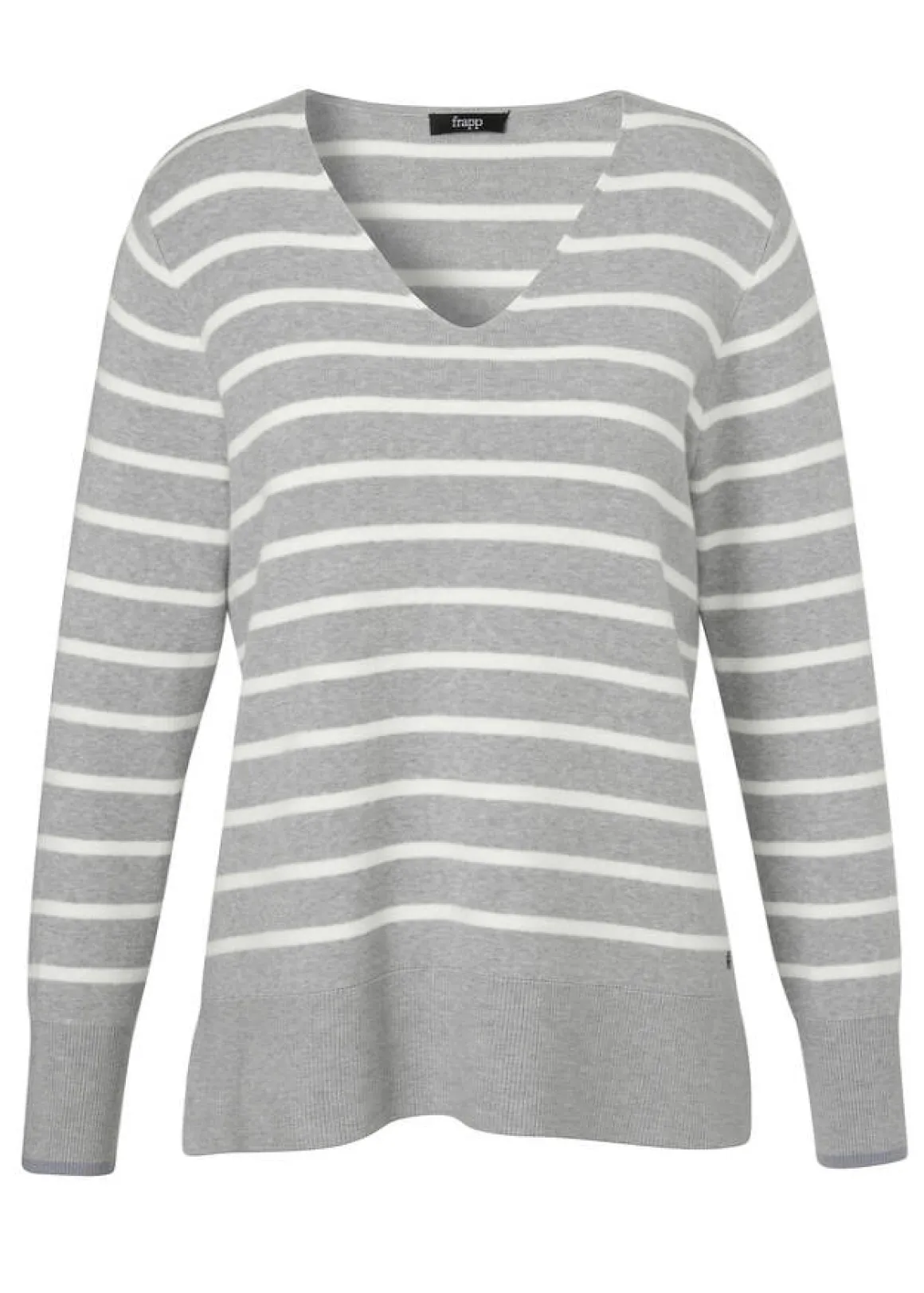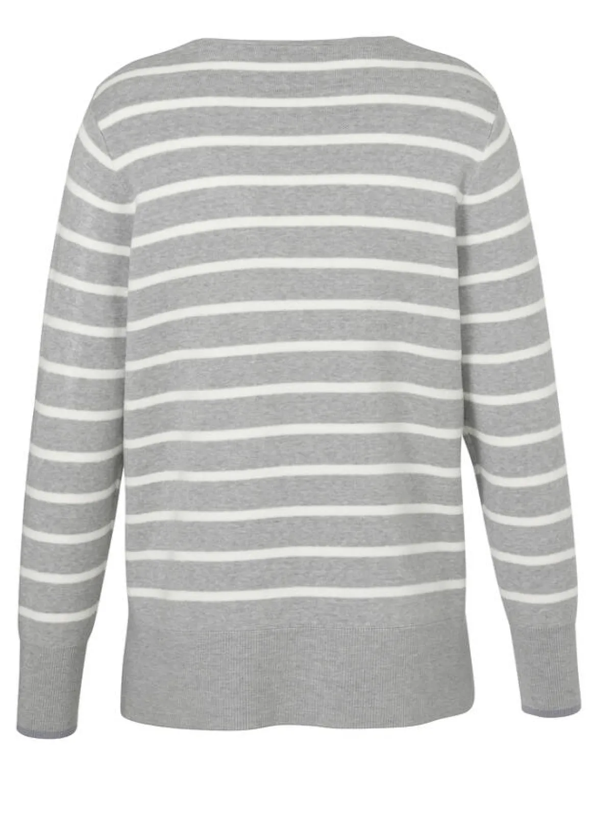 Klassisch vielseitiger Feinstrick Pullover im geringelten Design. Figurnah geschnitten und in hochwertiger Qualität, trägt sich dieses vielseitige Basic sehr angenehm und locker auf der Haut.
