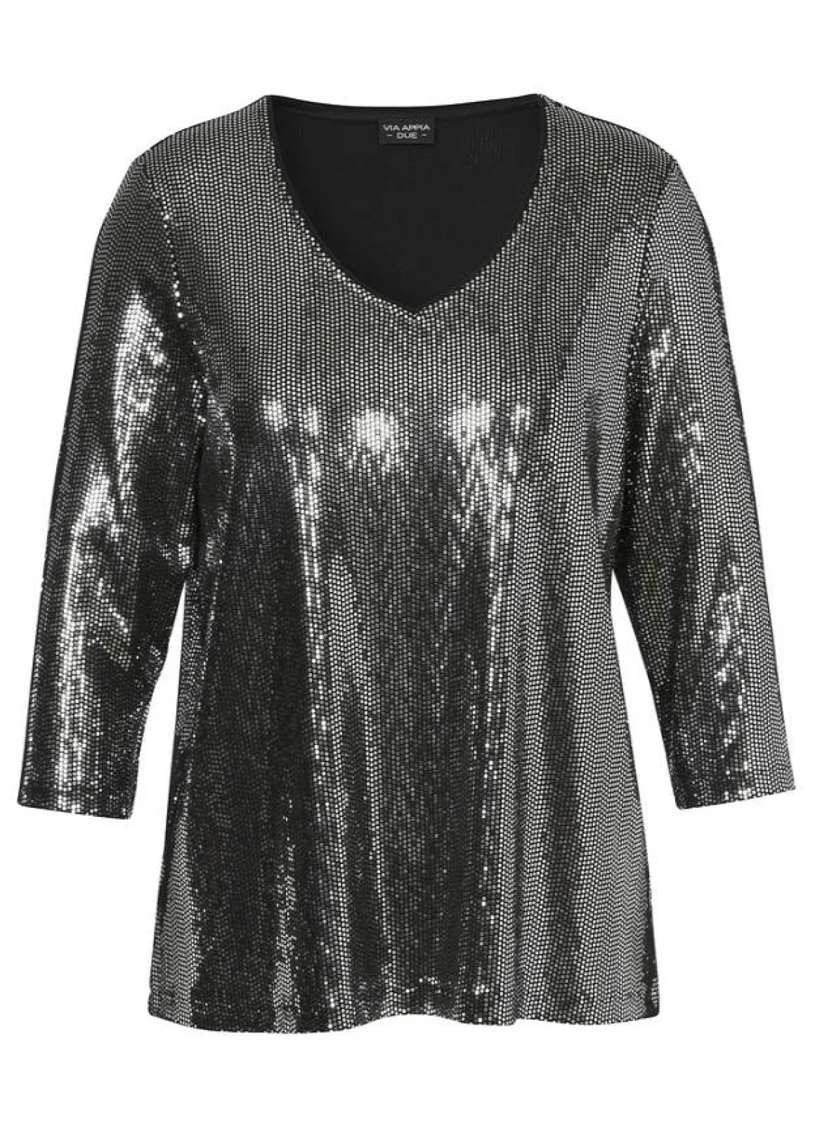 VIA APPIA DUE bringt mit diesem T-Shirt Punkte in Ihren Kleiderschrank! In eleganter und glamouröser Optik zeigt es sich mit reflektierenden Details. Dank seiner lässigen Passform umspielt es Ihre Silhouette perfekt und ist dazu wunderbar bequem.
