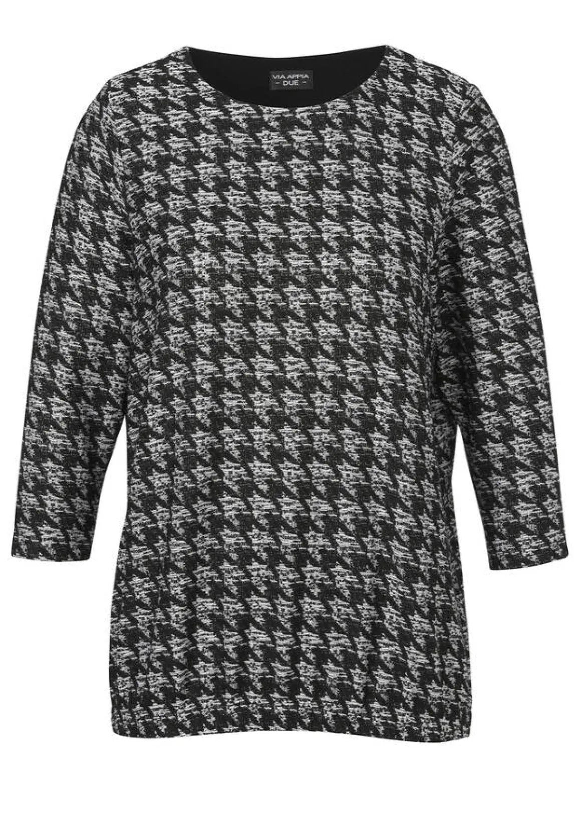 Edles 3/4-Arm Sweatshirt mit eingewebtem Jacquardmuster in Schwarz-Naturweiß mit Glitzereffekt durch einen silbernen Metallfaden.