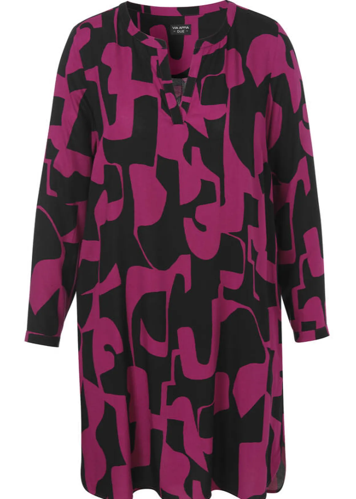 Zarte Viskose-Tunika mit zweifarbigem Muster: Ob als lange Tunika zu Jeans oder Stoffhose, oder als Kurzkleid zu Leggings oder Strumpfhosen – die lange Schlupfbluse macht immer eine gute Figur!