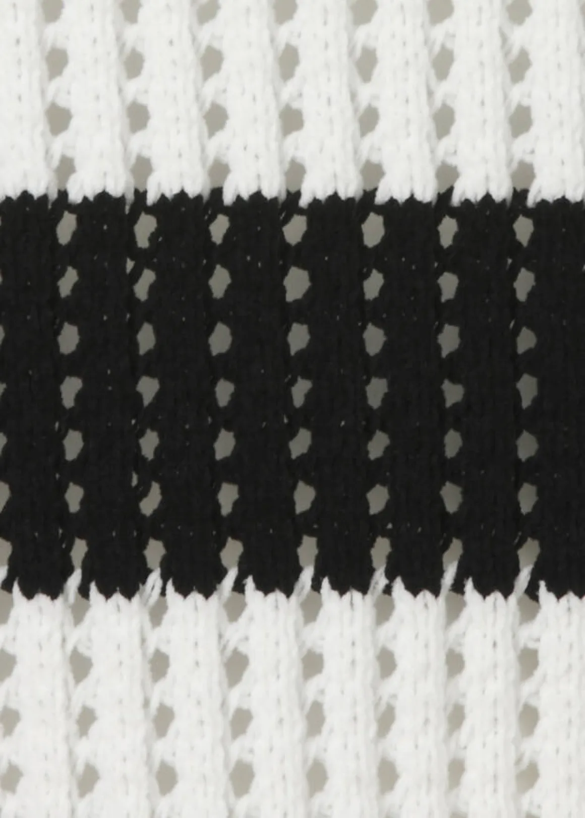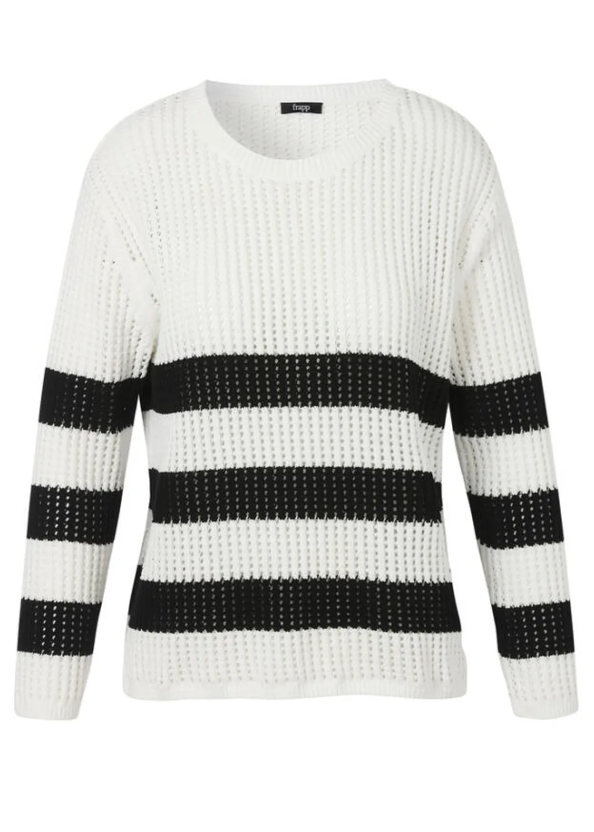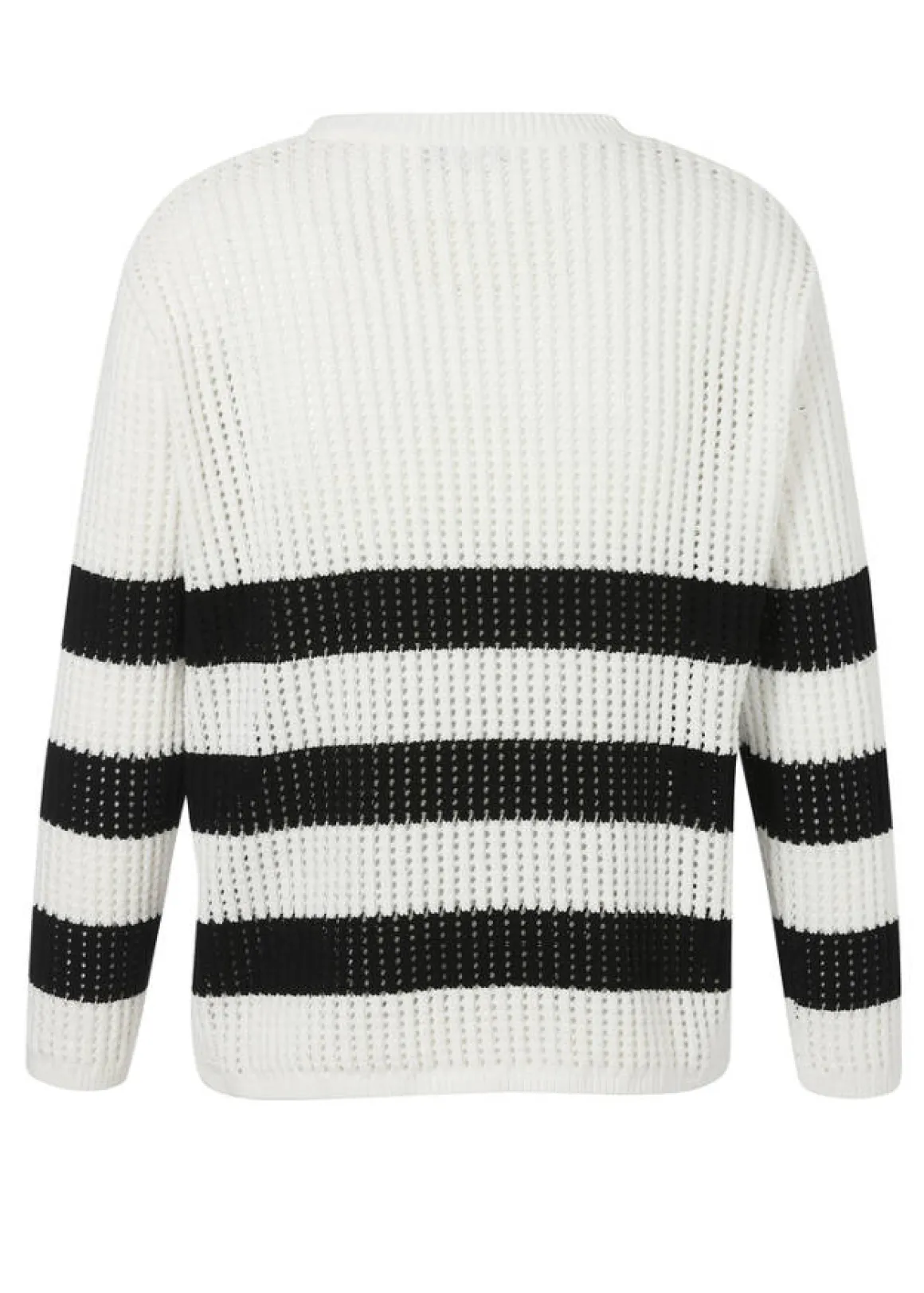 Luftig-leichter Pullover mit Lochmuster in Weiß mit schwarzen Streifen als topmodische Ergänzung für einen chicen Look über Shirt oder Bluse.