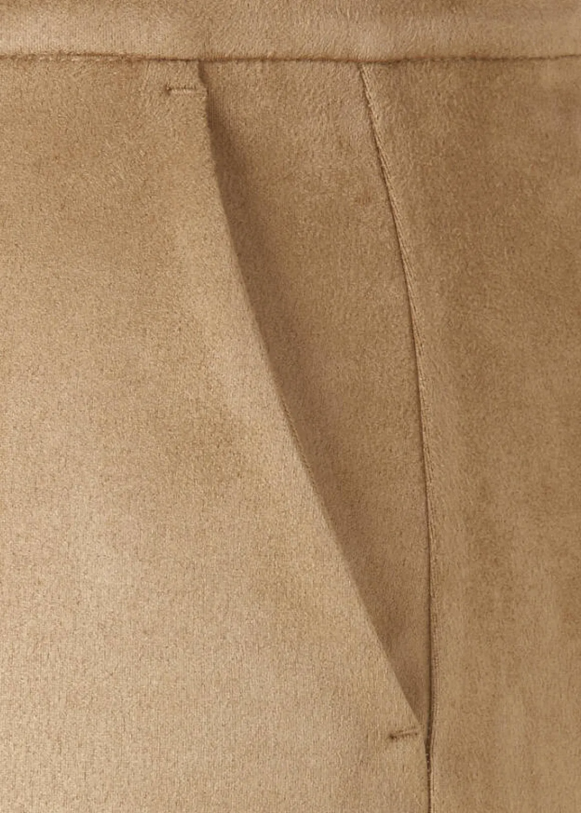 Schöne Hose im Farbton Camel in edler Veloursleder-Optik in bequemer Schlupfform. Feinste, pflegeleichte Qualität!