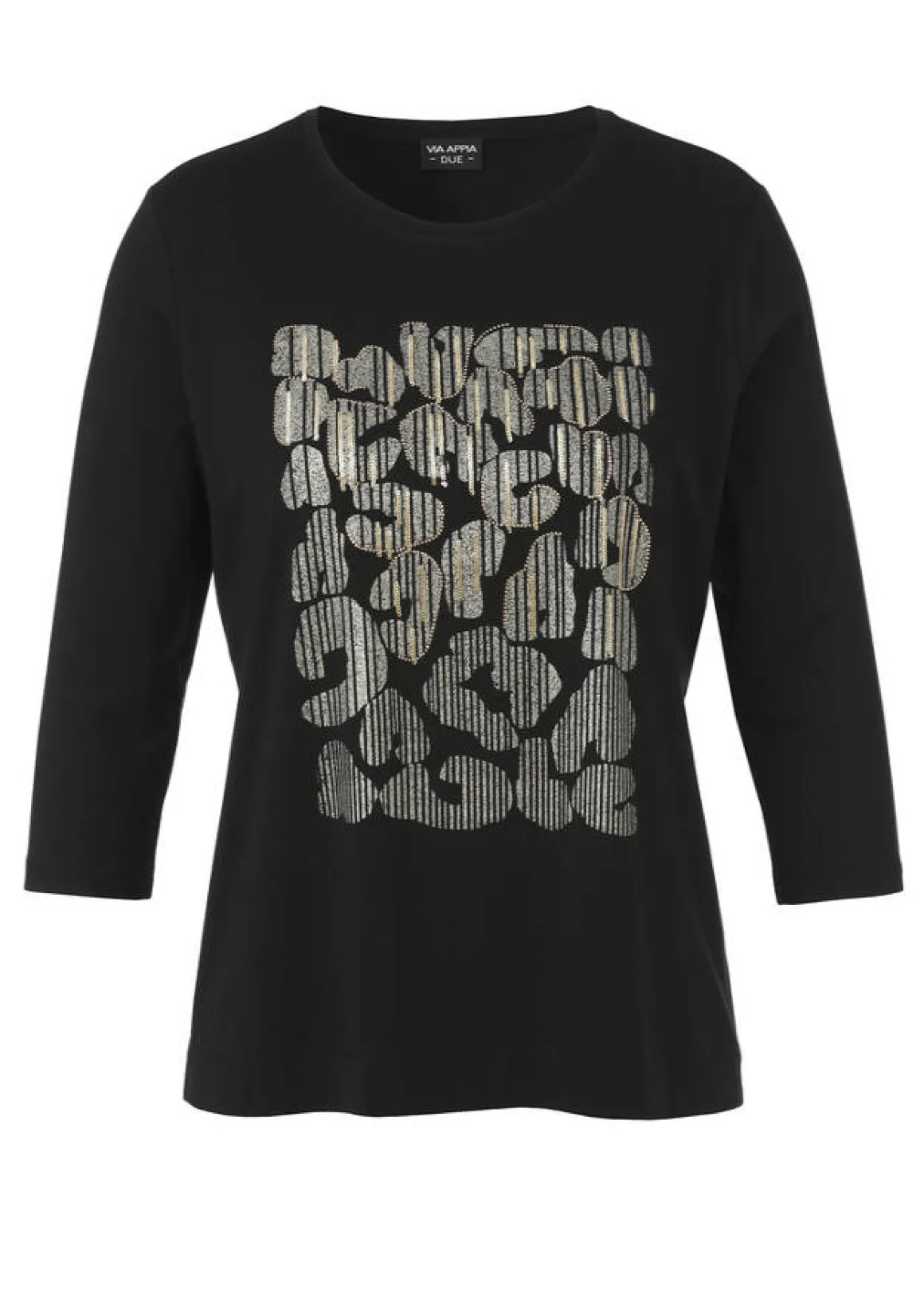 Weiches 3/4-Arm Shirt in Schwarz, das einfach und vielseitig zu kombinieren ist, aber mit einem geschmückten Frontmotiv zum unverwechselbaren Einzelstück wird.