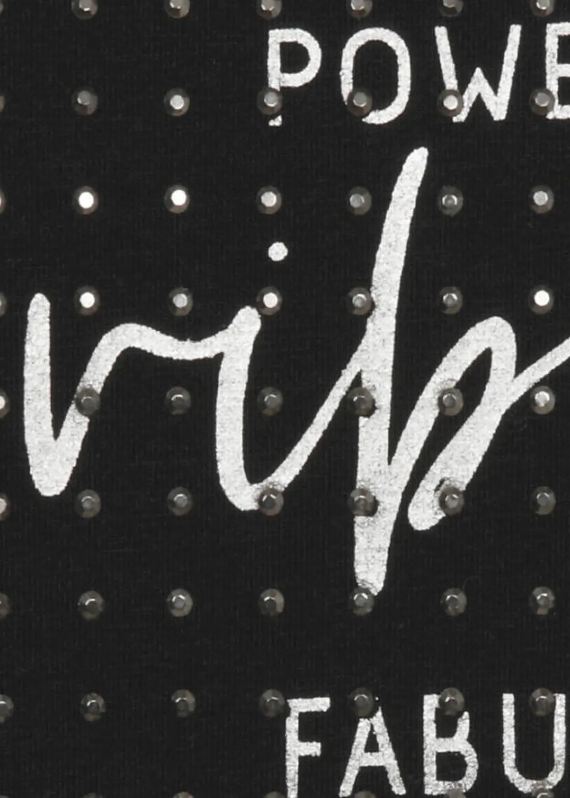 - Front-Motiv mit Slogan und tonigen Schmucksteinchen