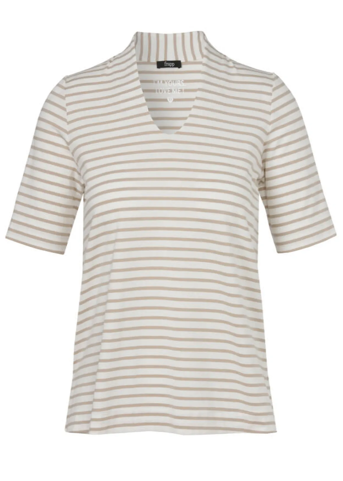 Softes Ringel-Shirt aus zartem Baumwoll-Jersey. Der leichte Kelchkragen mit dem spitz zulaufendem V am Dekolleté verleiht dem Shirt einen einzigartigen, edlen Look.
