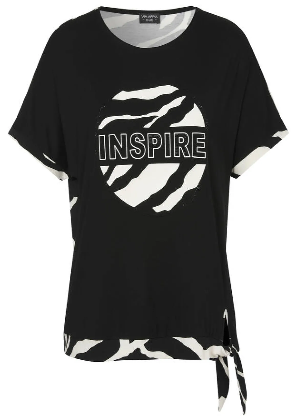 - Vorne Motto-Print "Inspire", Ziersteinchen, hinten Zebra-Print, Schwarz / Creme