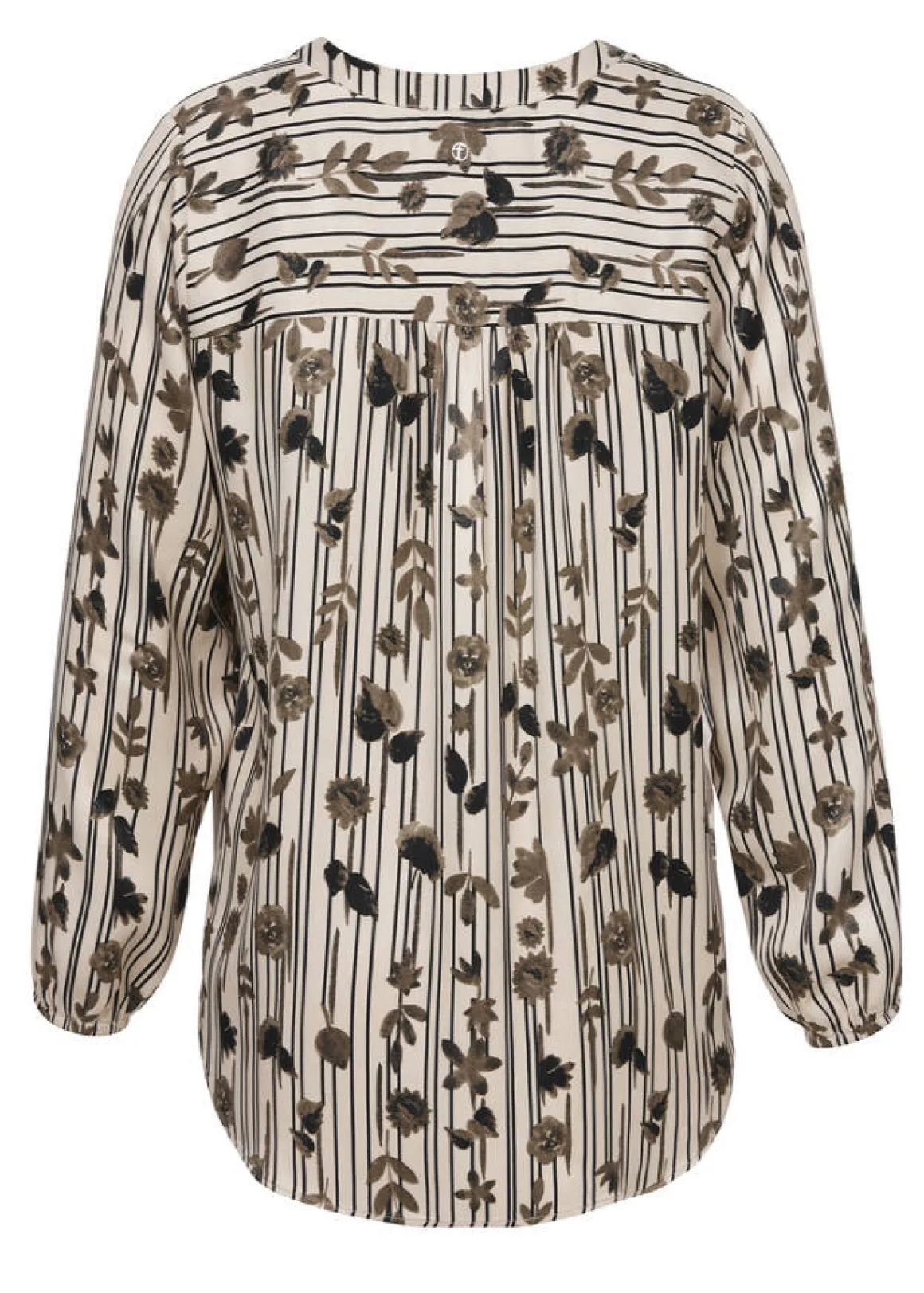 Fließende Viskosebluse in Schlupfform mt einem feinen, floralen Muster in edler Farbharmonie.