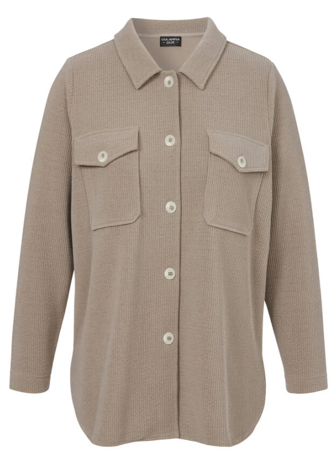 Für modische Layering-Looks: Die wärmende Hemdbluse im kombistarken Naturton Mokka kann offen auch als leichte Jacke getragen werden.