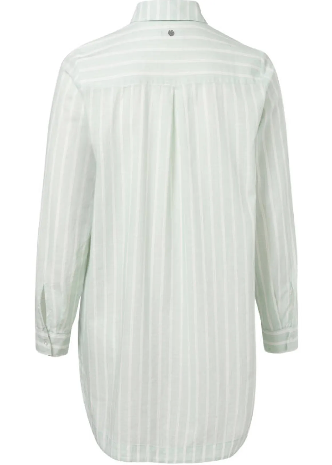 Business, Freizeit oder Party, diese Bluse von FRAPP lässt sich einfach in Ihren Alltag integrieren. Ihr gestreiftes Allover-Muster schafft ein dezentes, zeitloses Design. Durch Querstreifen im oberen Rückenbereich und an der Brusttasche entsteht gleichzeitig ein aufregender Kontrast, der alle Blicke auf sich zieht. Ihre lässige Passform mit verlängertem Rücken und die weiche Baumwolle verleihen der Bluse zudem ein wunderbares Tragegefühl, welches den ganzen Tag anhält.