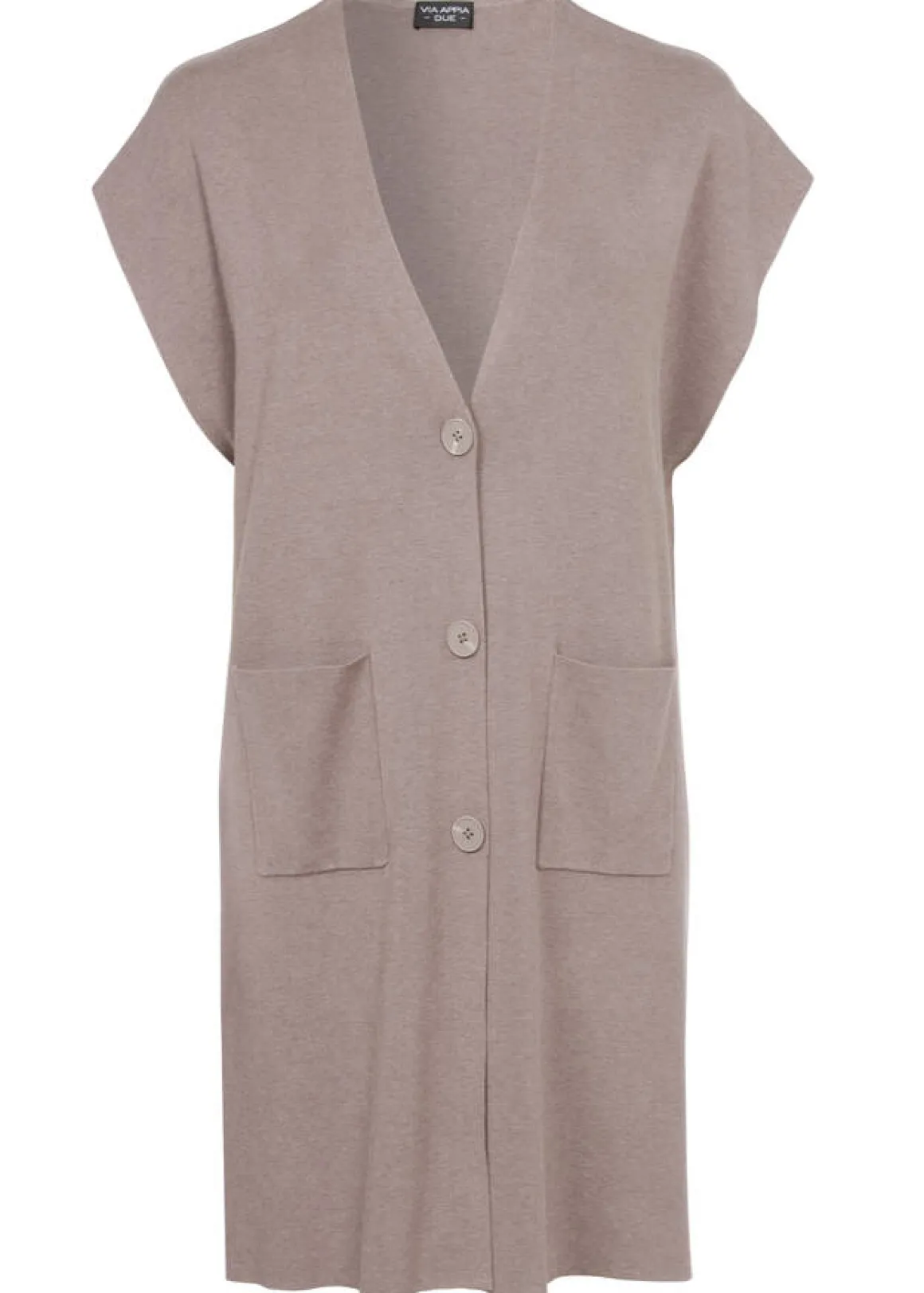Kommen Sie gut gestylt durch die kalte Jahreszeit – mit dieser oberschenkellangen Shirtweste von VIA APPIA DUE. Für die klassische Optik sorgt das unifarbene Design. Die überschnittenen Schultern und die Knopfleiste sorgen dabei gleichzeitig für eine moderne Optik und der V-Ausschnitt setzt einen femininen Akzent.