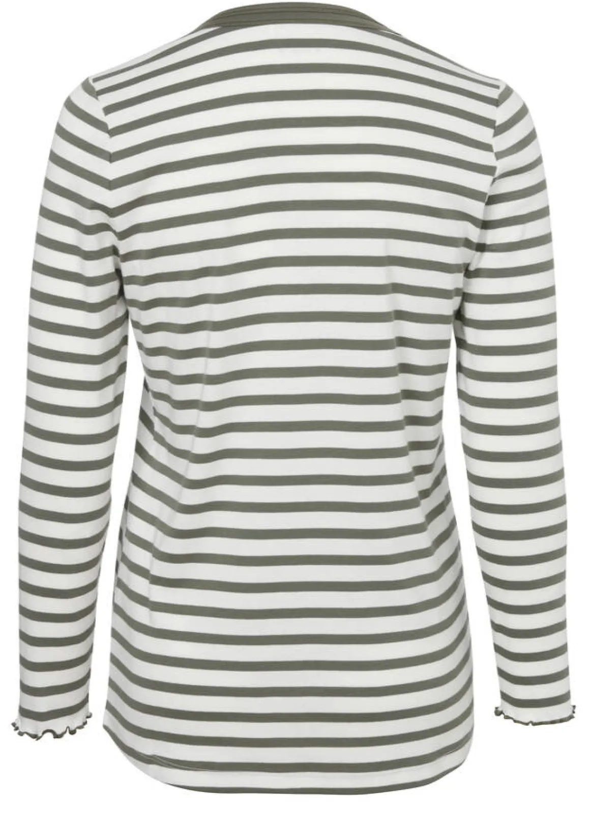 VIA APPIA DUE bringt mit diesem Langarmshirt frischen Wind in Ihren Kleiderschrank! Zugleich stylisch und klassisch präsentiert es sich mit einem gestreiften Allover-Muster. Dank der langen Ärmel mit Wellensaum brauchen Sie auch an kühlen Sommer-Tagen nicht zu frieren und die körpernahe Passform akzentuiert Ihre Silhouette perfekt. Mit seiner bequemen Baumwolle ist das Shirt dabei wunderbar weich.