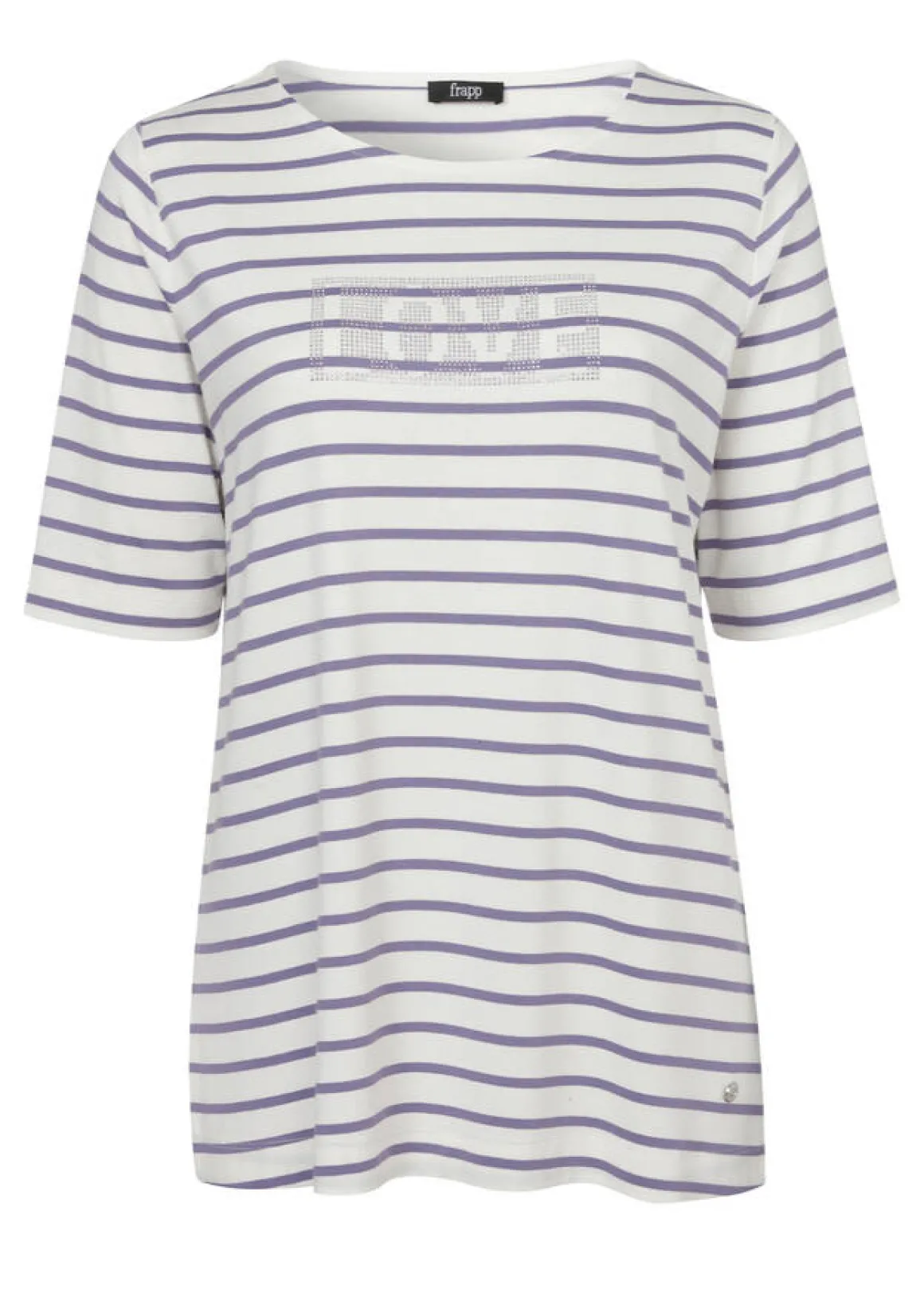 Machen Sie ‚Love‘ zu Ihrem persönlichen Tagesmotto – mit diesem T-Shirt von FRAPP. Für das zeitlose Design sorgt das gestreifte Allover-Muster. Dabei setzen Glitzersteine und eine Logo-Applikation glänzende Eyecatcher. Mit seiner lässigen Passform schafft es das Shirt zudem, Ihre Silhouette perfekt zu umspielen, und bietet zusammen mit der hochwertigen Viskose-Stretch-Mischung optimalen Komfort.