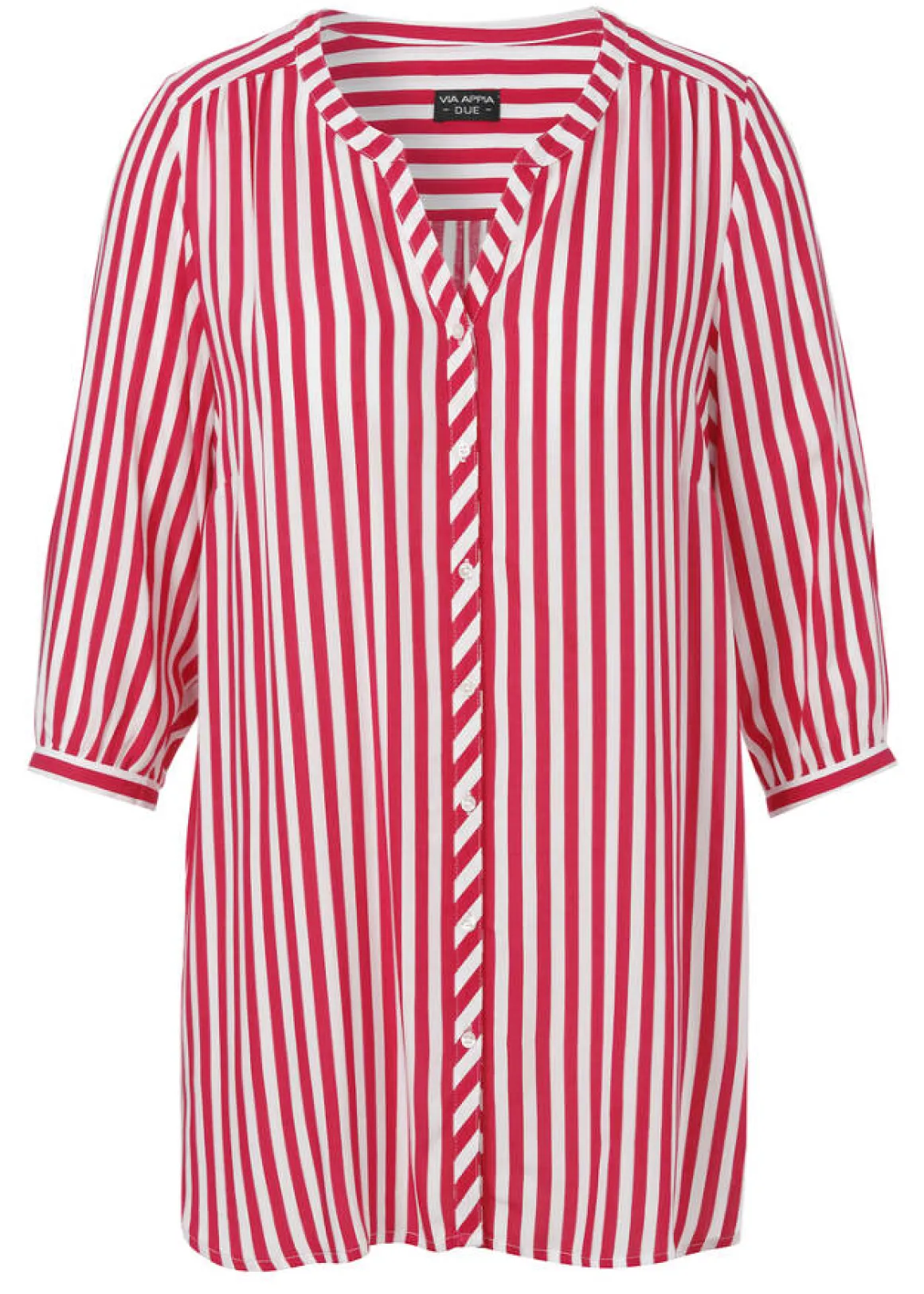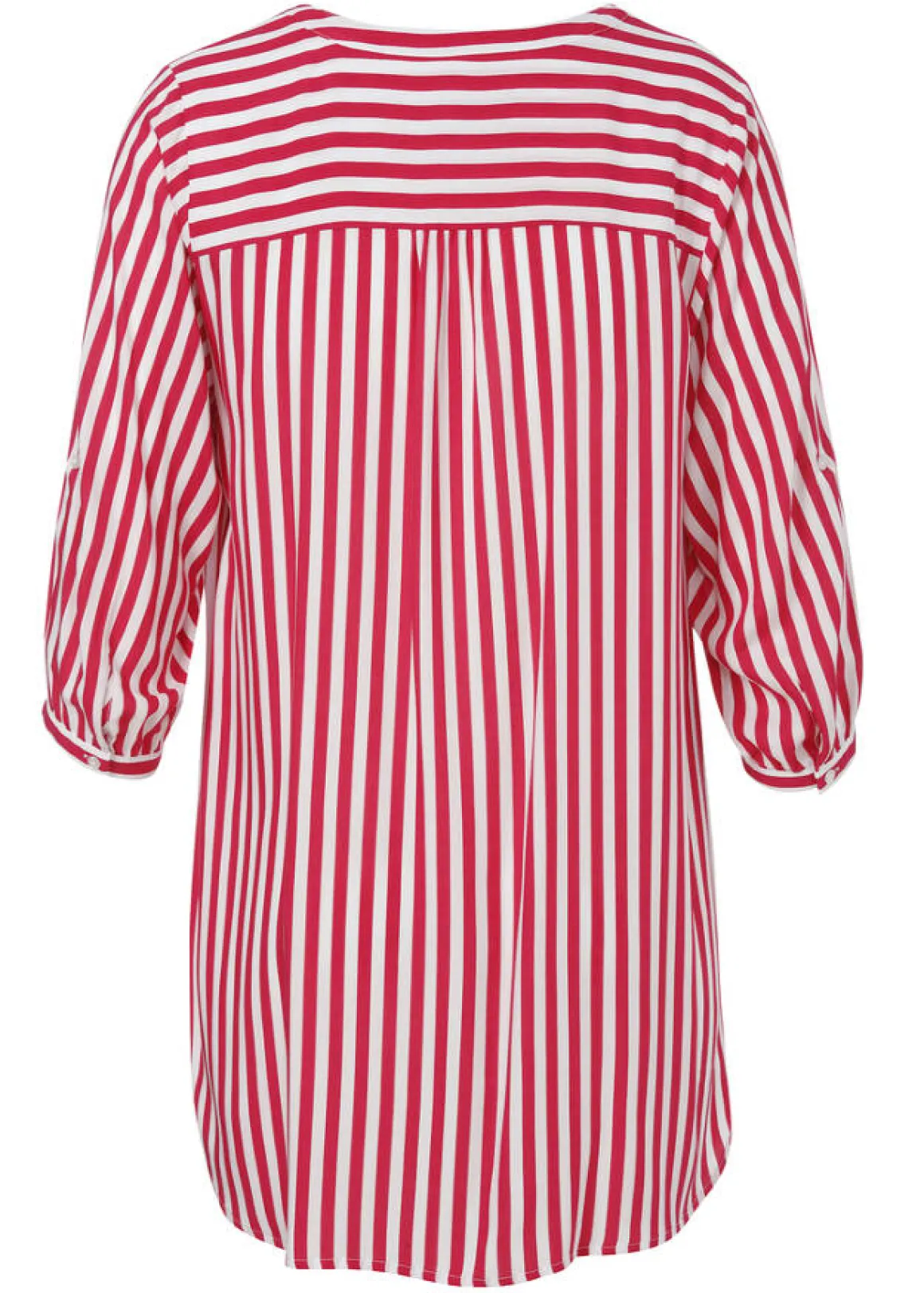 In der warmen Jahreszeit braucht jeder komfortable und unkomplizierte Kleidung, die sich angenehm trägt und zugleich gut aussieht. Die locker geschnittene Longbluse aus reiner Viskose umspielt luftig die Figur und streckt dabei durch die Längsstreifen die Silhouette!