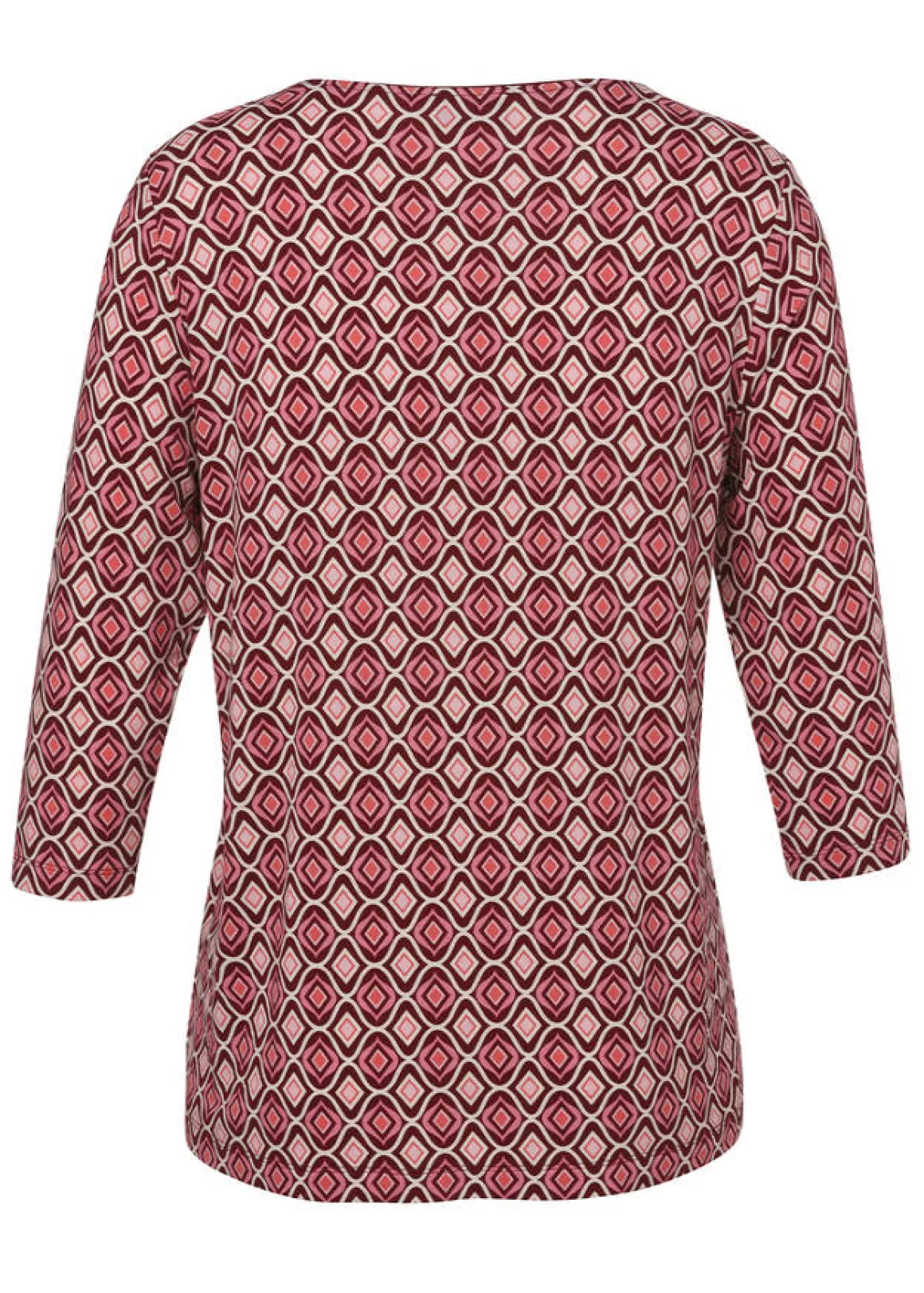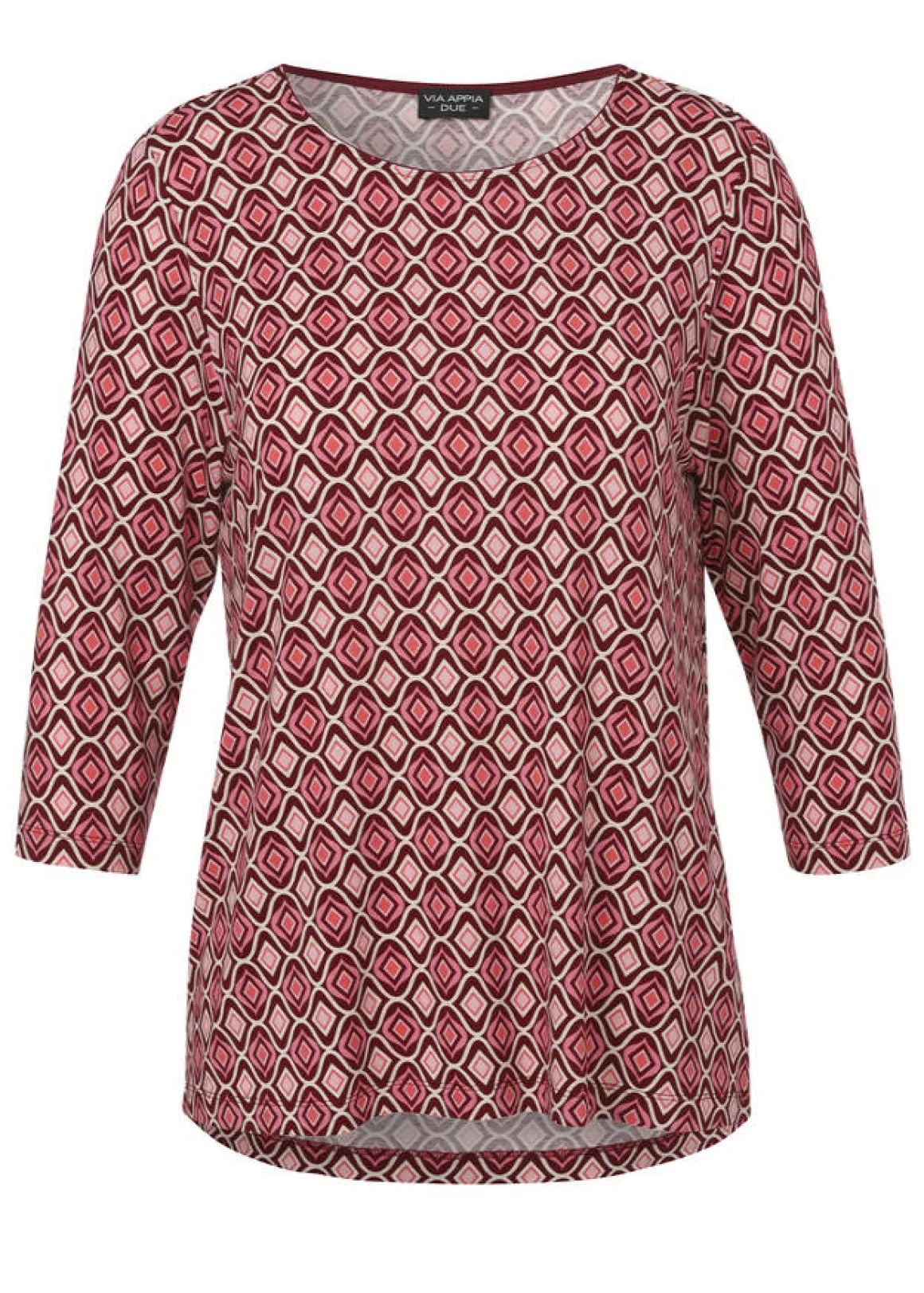 Feminines 3/4-Arm-Shirt mit Allover-Print in trendigen Beerentönen aus edel fließendem Viskose-Jersey für höchsten Tragekomfort.