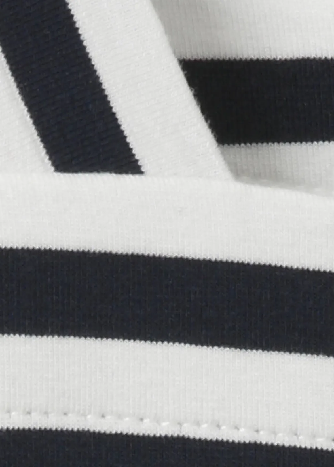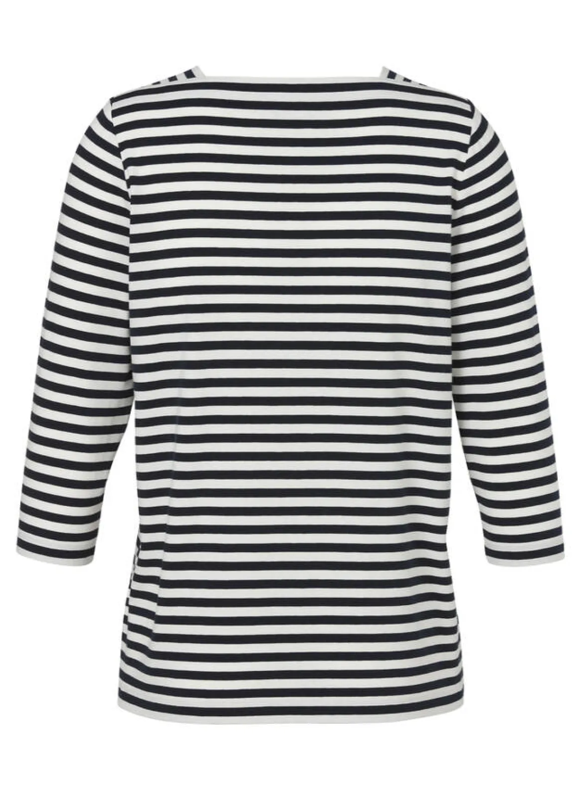 Feminines Ringelshirt mit 3/4-Ärmeln und einem femininen Karree-Ausschnitt für zeitlos schöne, fröhliche Looks. Sehr bequem und mit hohem Tragekomfort in einem locker figurumspielenden Schnitt.
