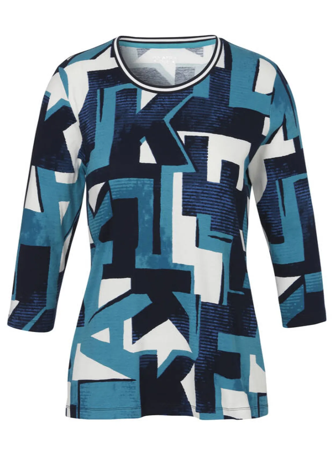 3/4-Arm Shirt mit grafischem Allover-Muster in edler Farbharmonie. Bequem mit hohem Tragekomfort dank hochwertigem, elastischem Baumwoll-Stretch.