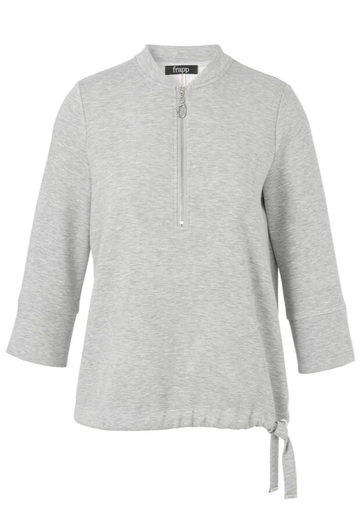 3/4-Arm Sweatshirt mit schmückendem Zipper in Silber-Melange, leicht nach unten ausgestellt mit Bindeband im Saum.