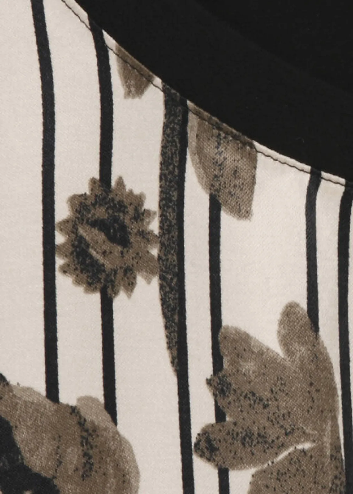 Feines Blusenshirt mit floralem Print in edler Farbharmonie. Der Rücken ist einfarbig Schwarz aus softem Viskose-Jersey.