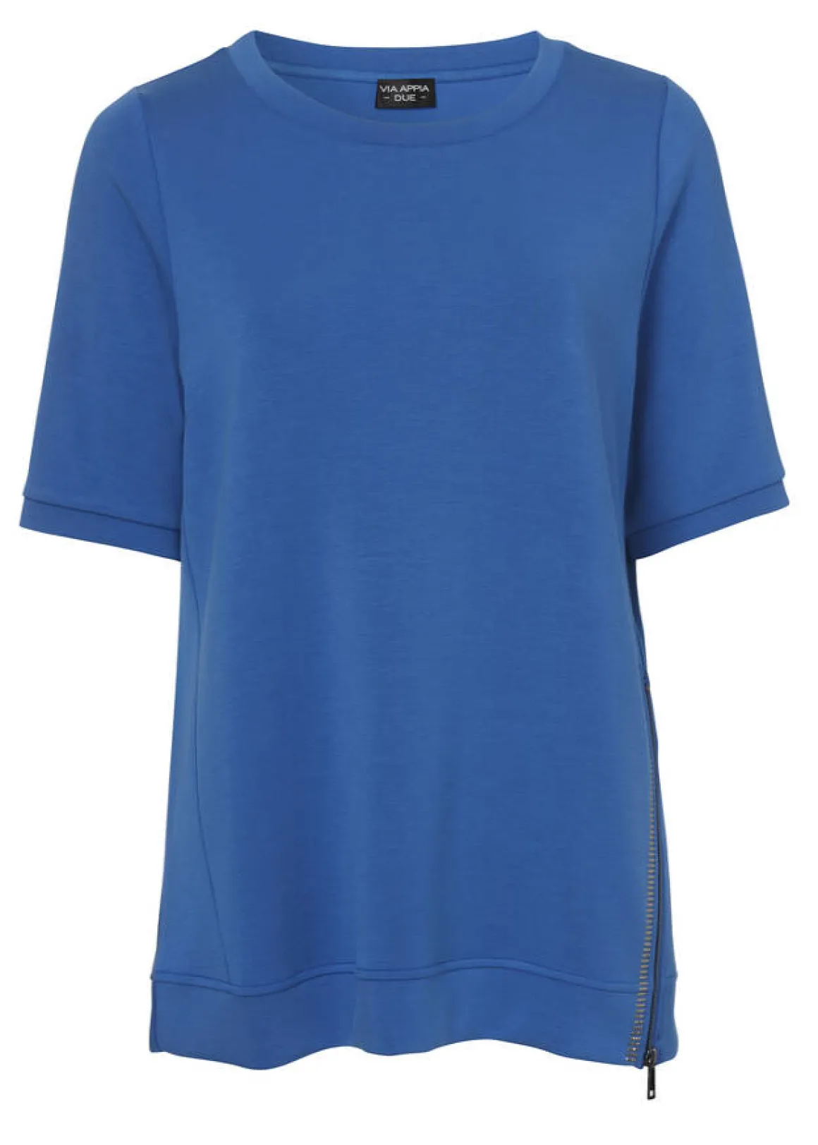 Ein schimmernder Zierreißverschluss macht dieses lässige Sweatshirt von VIA APPIA DUE zum idealen Kombiteil für Ihre Freizeit. Das unifarbene Design wirkt dezent und bietet vielfältige Kombi-Möglichkeiten. Feminine Eyecatcher werden dabei durch die Glitzersteine erzeugt. Seine hautfreundliche Viskosemischung mit Stretch-Anteil und die lockere Passform machen das Sweatshirt zudem wunder bequem.