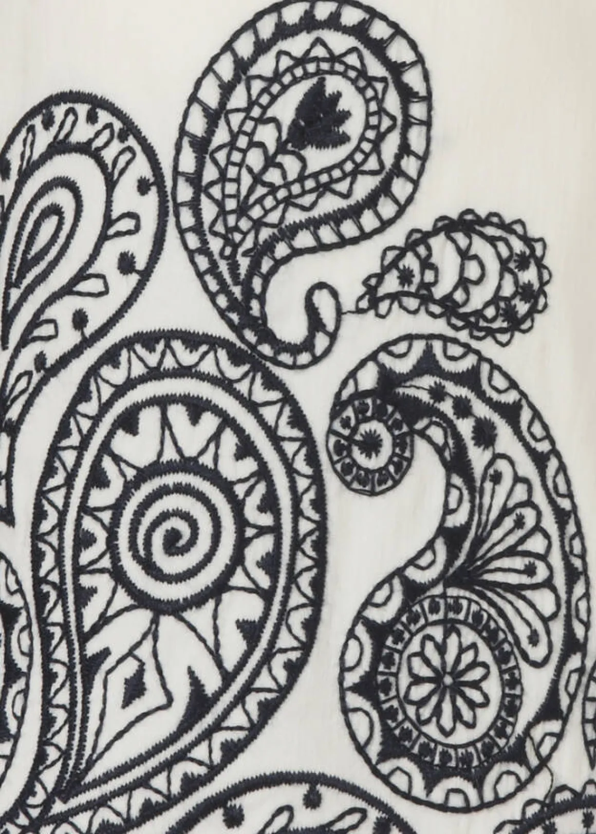 - Einfarbig "Butter" mit dunkelblauer Stickerei