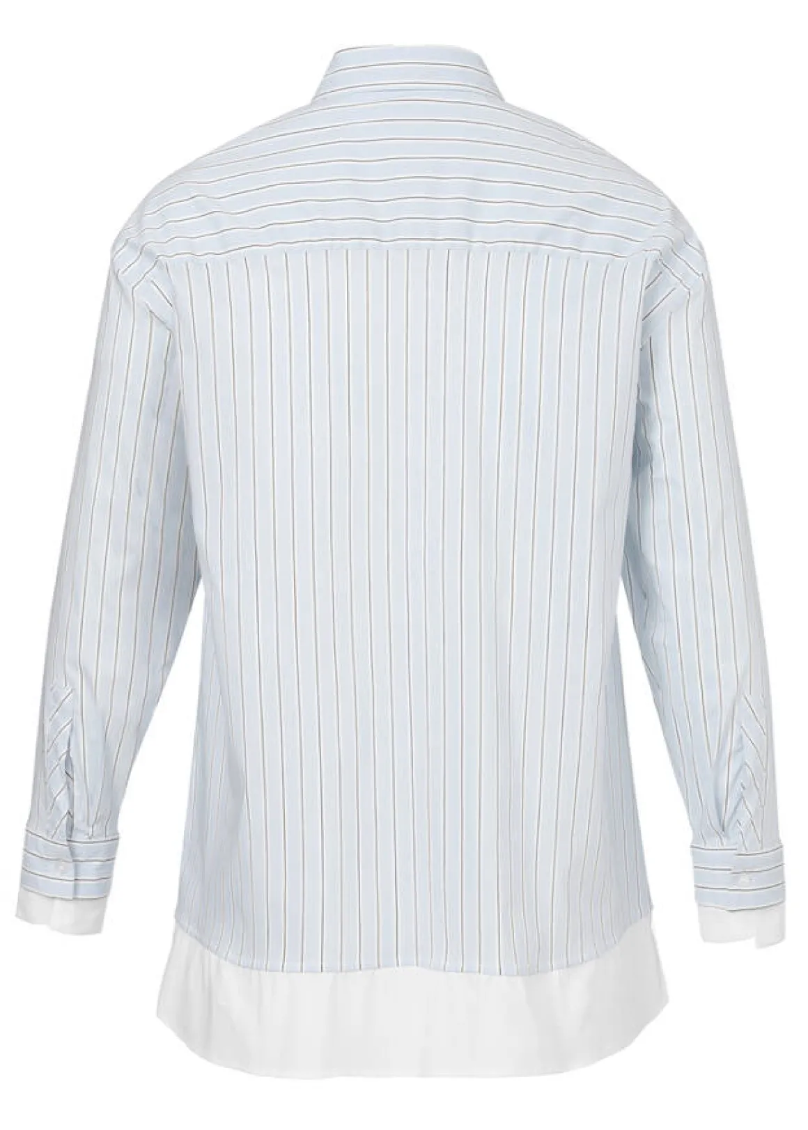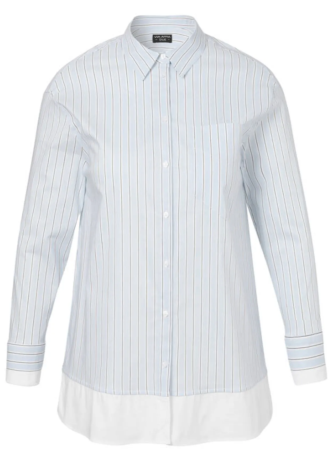 Edle Baumwoll-Stretch Hemdbluse in Eisblau mit feinem Streifen-Dessin und weiß abgesetztem Saum.