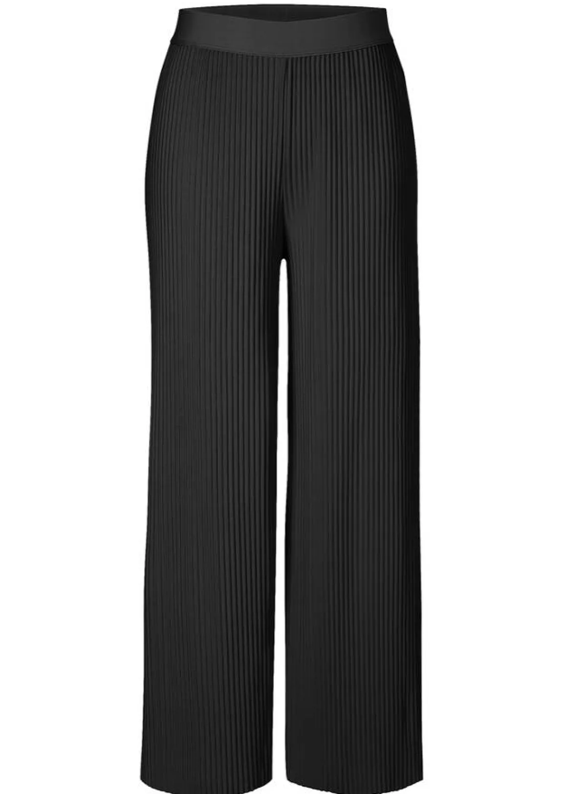 Die edle Schlupf-Hose aus plissiertem Krepp vereint eleganten Chic und bequemen Komfort. Sie überzeugt mit einem elastischen Bund und locker-luftiger Weite. Das edle Design sorgt für feminine Eleganz.