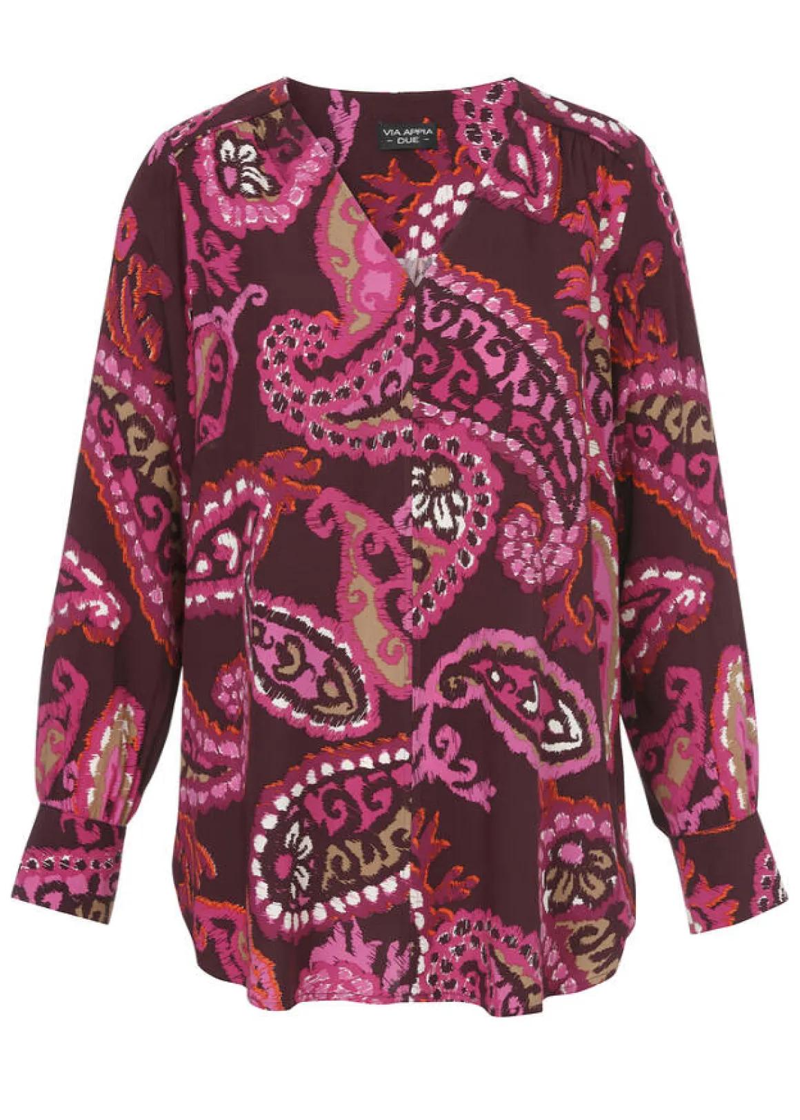 Diese extravagante Schlupfbluse von VIA APPIA DUE gehört einfach in Ihren Kleiderschrank! Das abstrakte Paisley-Muster verleiht ihr ein ausgefallenes Design und zieht alle Blicke auf sich. Ihre lässige Passform verleiht der Bluse zudem ein wunderbares Tragegefühl, welches den ganzen Tag anhält, und umspielt gekonnt die Silhouette.