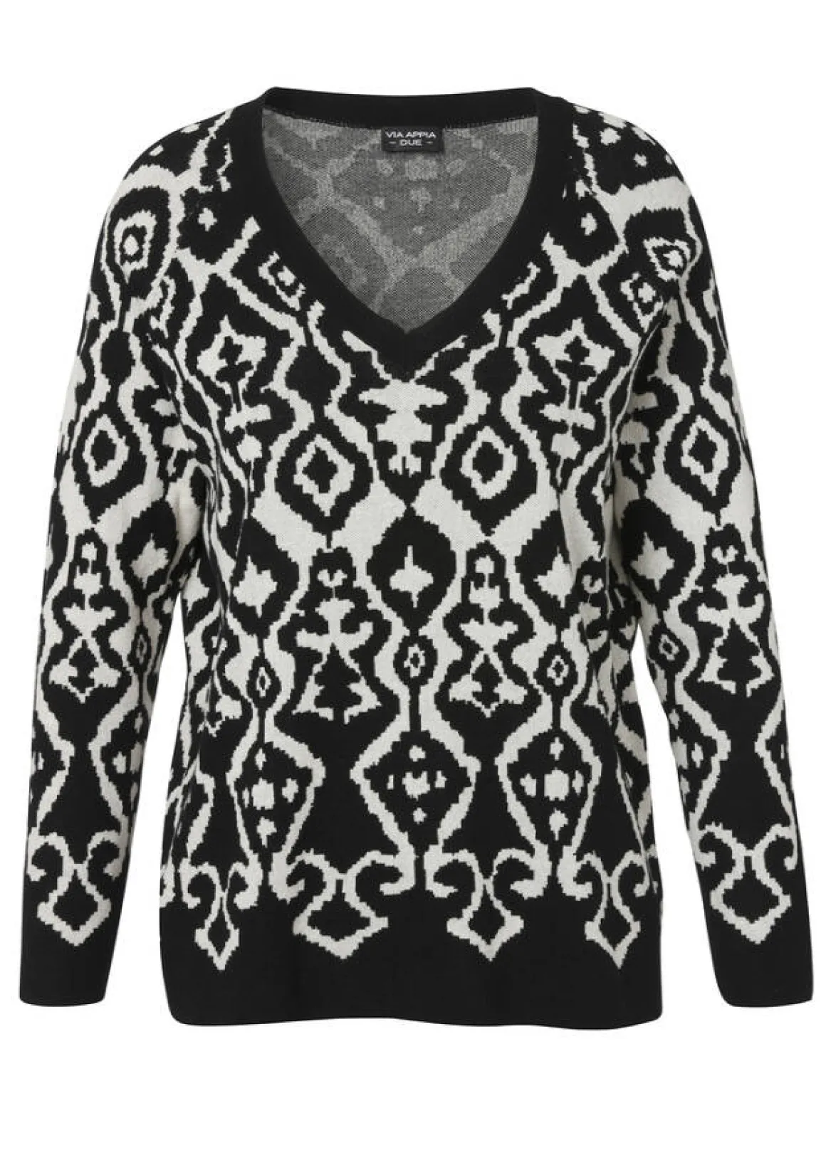 Für Ihren Alltags-Look wird dieser lässige Strickpullover von VIA APPIA DUE zum absoluten Lieblingsteil. Extrovertiert und in aufsehenerregendem Design präsentiert er sich mit einem grafischen, zweifarbigen Allover-Muster. Seine reine Baumwolle ist dabei besonders hochwertig und macht ihn zusammen mit dem lässigen Schnitt wunderbar bequem.