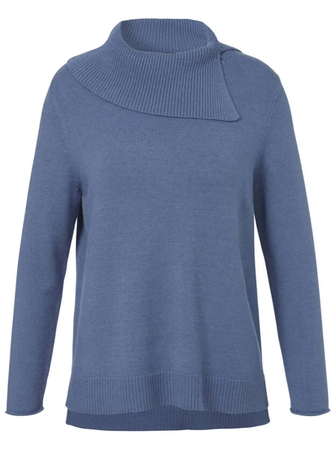 Kombistarker Pullover mit großem Kragen im edlen Farbton Bleu. Sehr schön zur Jeans und zu warmen Naturtönen.