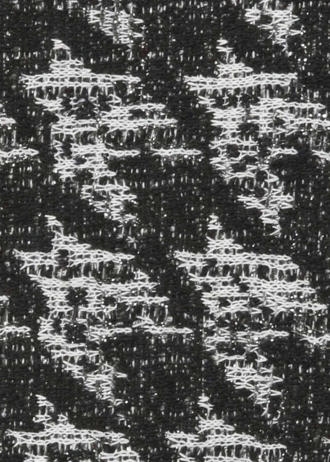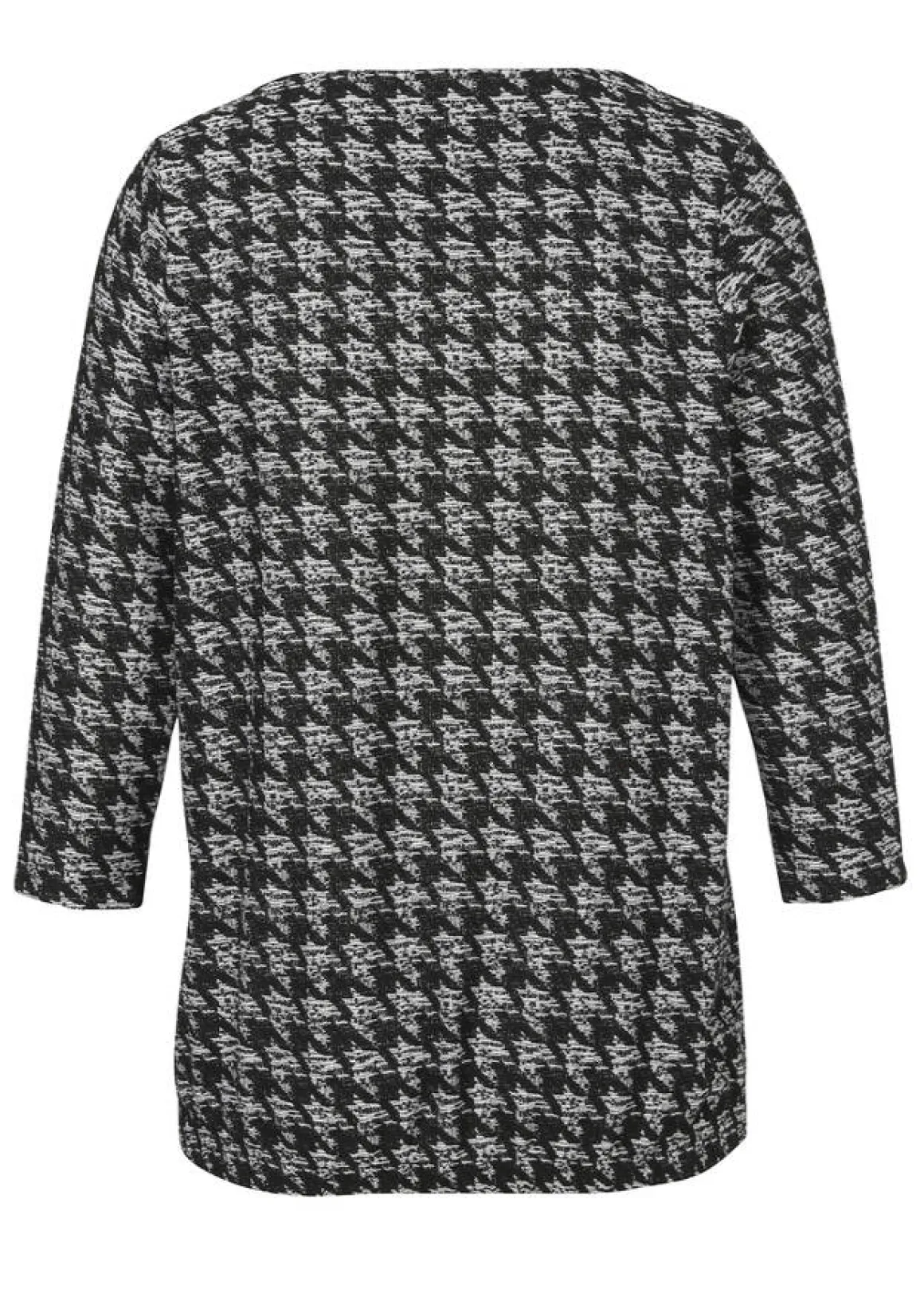 Edles 3/4-Arm Sweatshirt mit eingewebtem Jacquardmuster in Schwarz-Naturweiß mit Glitzereffekt durch einen silbernen Metallfaden.