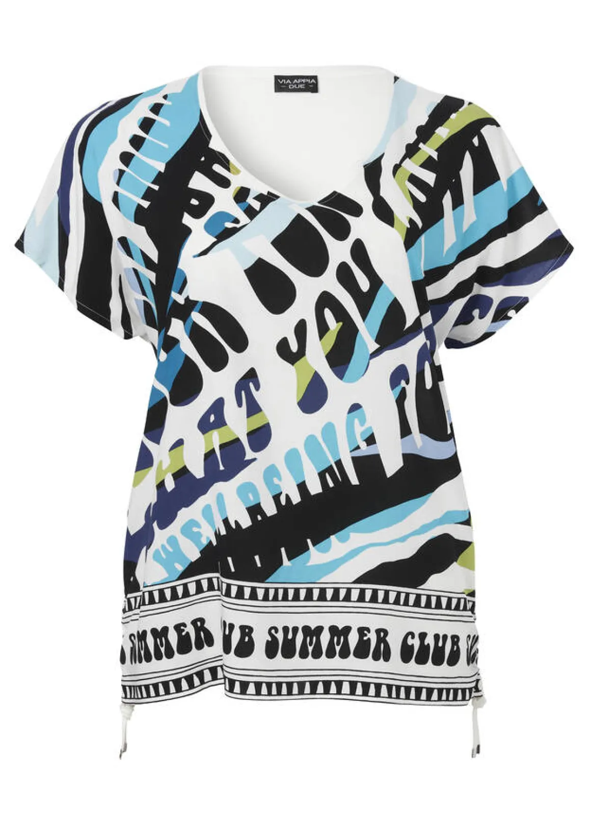 Diese Schlupfbluse von VIA APPIA DUE begeistert mit ihrem jugendlichen Design und einem bunten, abstrakten Lettering, das alle Blicke auf sich zieht. Sie überzeugt zudem mit ihrer körpernahen Passform und fällt dank der überschnittenen Schultern und des gerafften Bunds dennoch schön locker. Die hautfreundliche Baumwollmischung ist zudem besonders weich