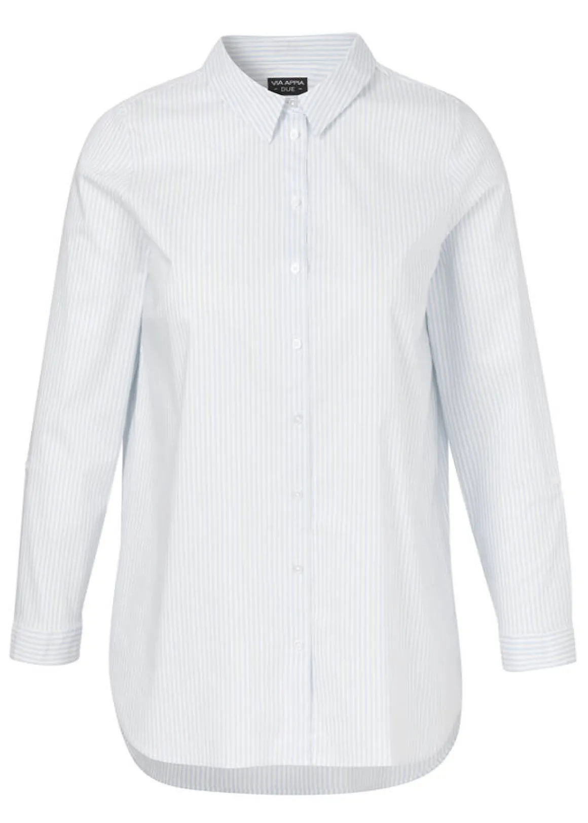 - Blusenkragen, Langarm, komplett durchgeknöpft, abgerundeter Saum