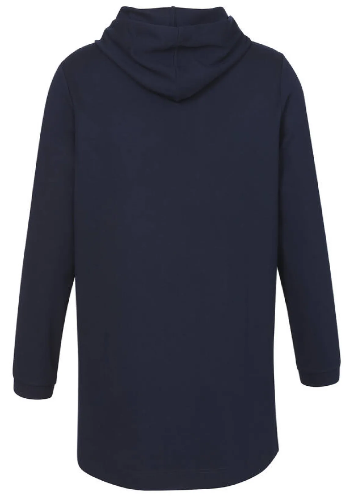 Kombistarkes, längeres Sweatshirt in Marine mit Kapuze in Marineblau mit tonigem Front-Motiv. Für zeitlos schöne, unverwechselbare Looks!