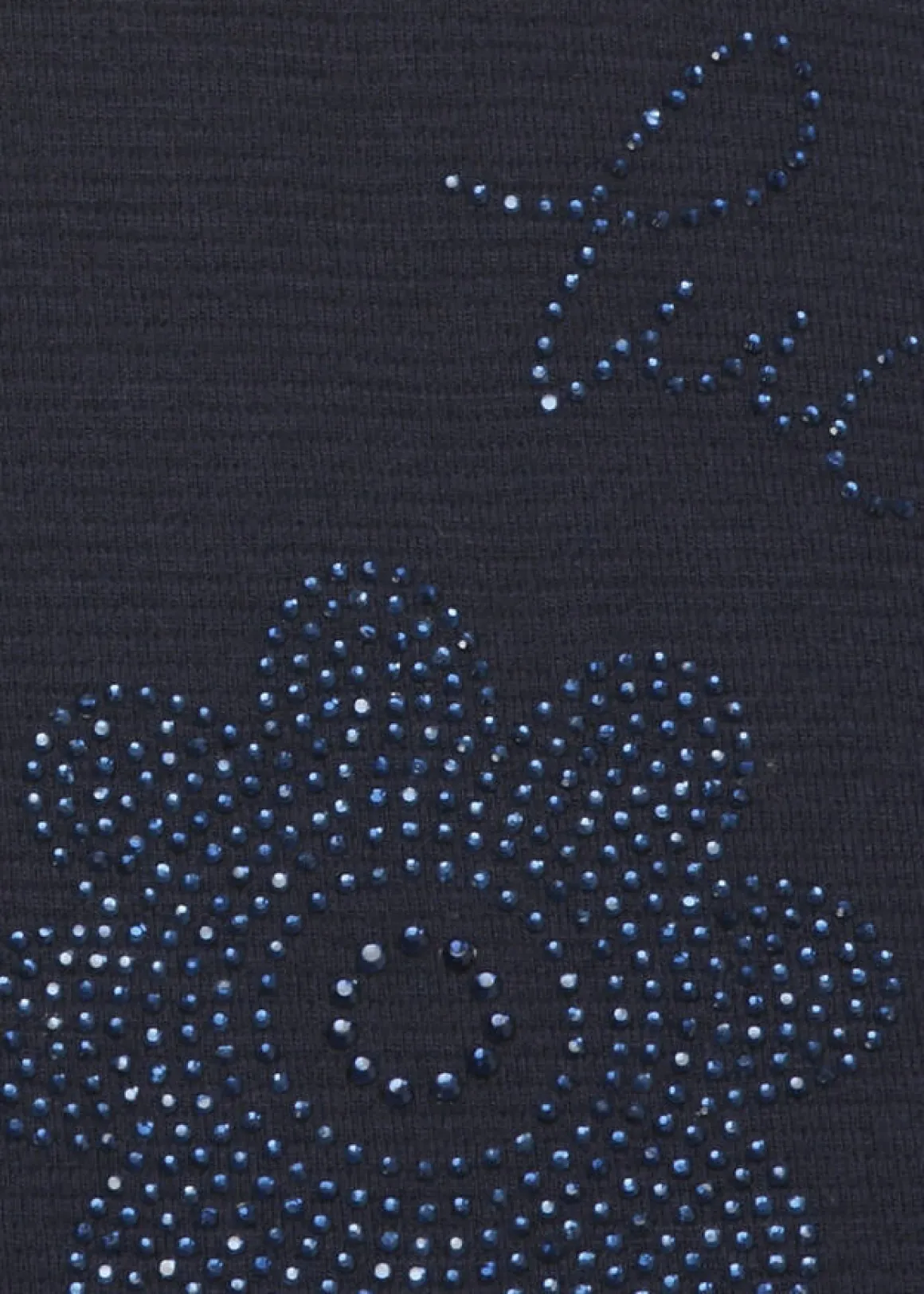 - Einfarbig Marineblau, aufgestickte Motive, Schmucksteinchen