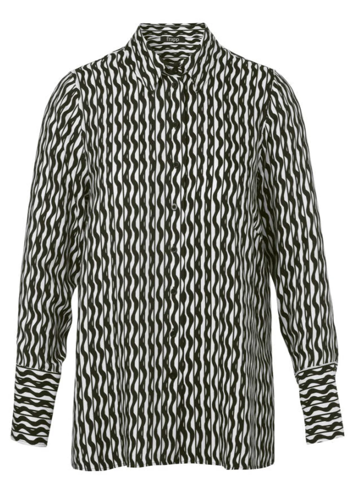 Fließende Viskosebluse mit angesagtem Allover-Print im Wellen-Dessin. Luftig und locker figurumspielender Schnitt.