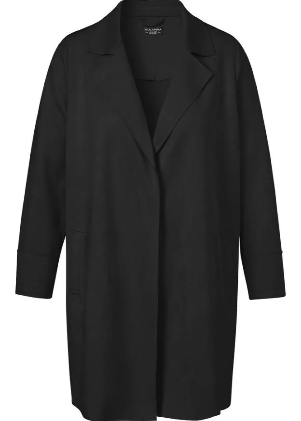 Edler Revers-Mantel in Schwarz in samtiger Veloursleder-Optik in hochwertiger, pflegeleichter, elastischer Qualität. Kombistark und zeitlos schön.
