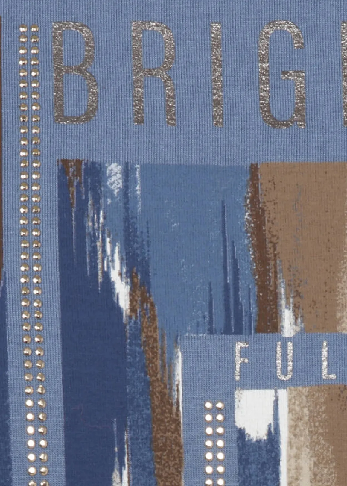 Supersoftes 3/4-Arm Shirt in Bleu mit einem geschmückten Motiv vorne. Hochwertiger Materialmix, bequem mit sehr angenehmem Tragegefühl.