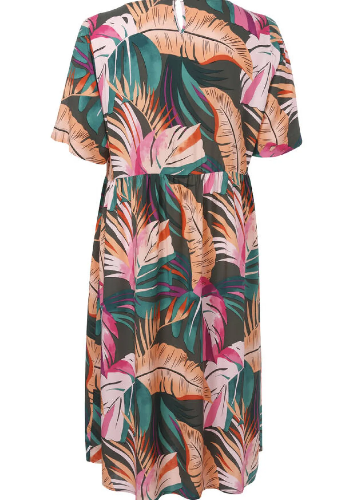 Zeigen Sie Ihre feminine Seite – mit diesem wadenumspielenden Kleid von VIA APPIA DUE! Mit seiner lässigen Passform schafft es es, Ihre Silhouette perfekt zu akzentuieren, und sein exotisches Allover-Muster liegt absolut im Trend. Der sportive Rundhalsausschnitt schafft zudem ein schönes Dekolleté. Wegen seiner kurzen Ärmel ist das Kleid besonders an warmen Tagen angenehm zu tragen.