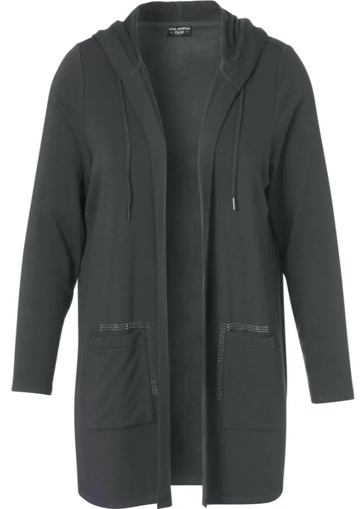 Zeigen Sie Ihren individuellen Style – mit schimmernden Glitzersteinen auf dieser lockeren Sweatjacke von VIA APPIA DUE. Lässig und in sportiv präsentiert sie sich schlicht unifarben und mit Kapuze. Die Glitzersteine erzeugen dennoch glänzende Akzente und peppen das Gesamtbild auf. Weich und hochwertig wird die Sweatjacke dabei durch die Viskosemischung.
