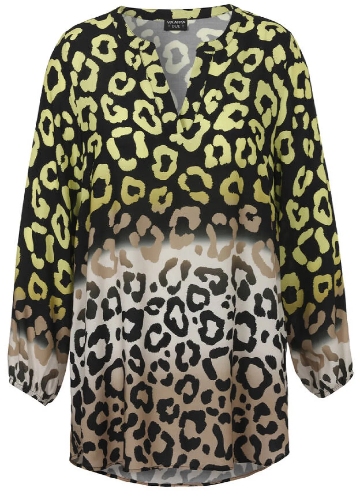 Edel fließende Viskose-Bluse mit Eyecatcher Print Modern Leo mit Farbverlauf für unverwechselbare Looks mit höchstem Tragekomfort.
