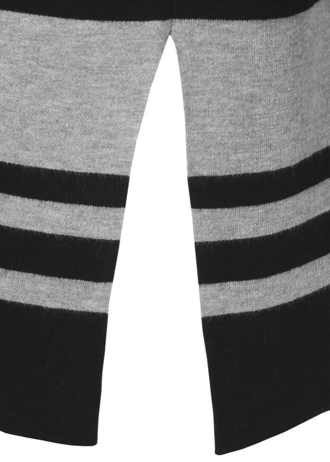 Edler Feinstrickpullover Bicolor in Schwarz mit Muster in Grau-Melange und chicem Kelchkragen.